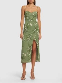 Reformation’s ‘Alanis’ mini dress is the ultimate party piece. It’s cut from glossy silk with an elegantly draped, one-shoulder bodice and a wrap-effect skirt. Style yours with a pair of statement earrings and mules. Colour: green