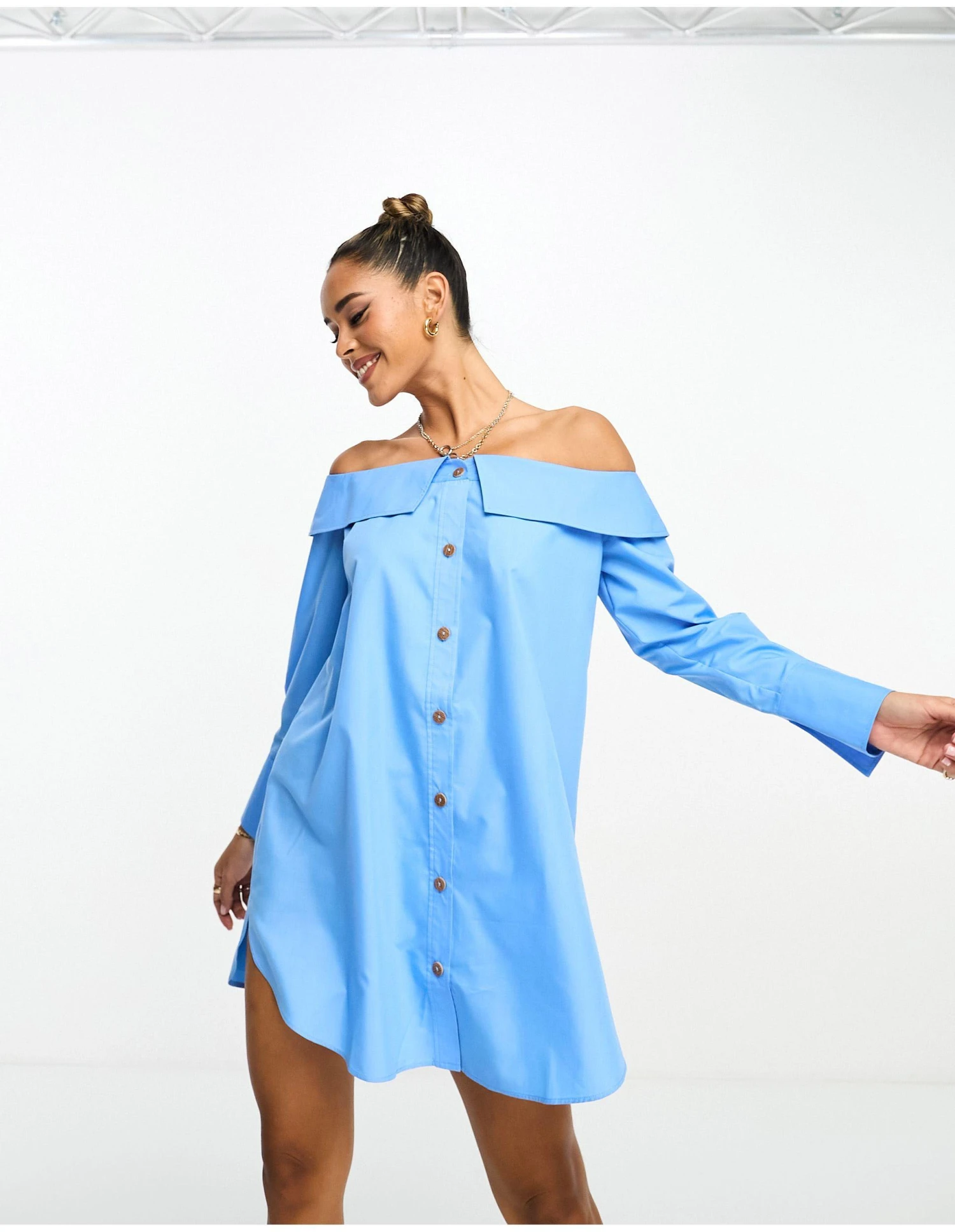 Dresses by ASOS DESIGN Best dressed: secured Bardot neck Button-through front Long sleeves Relaxed fit. Polyester/Cotton. Colour: blue