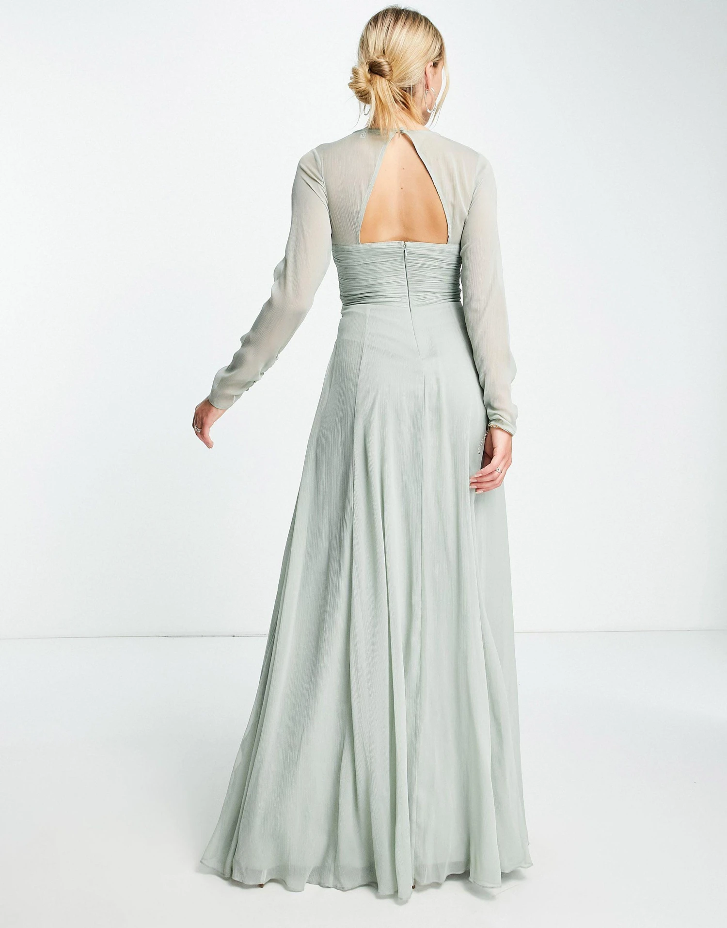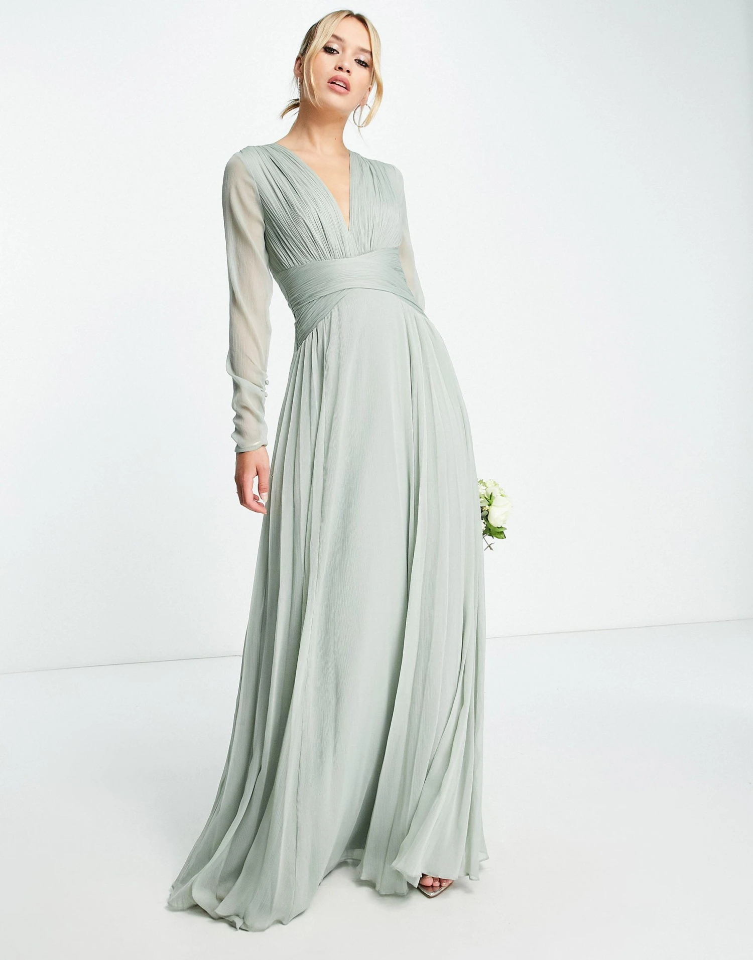 ASOS Bridesmaid Ruched Waist Maxi Dress With Long Sleeves And Pleat Skirt