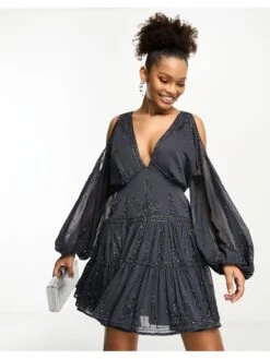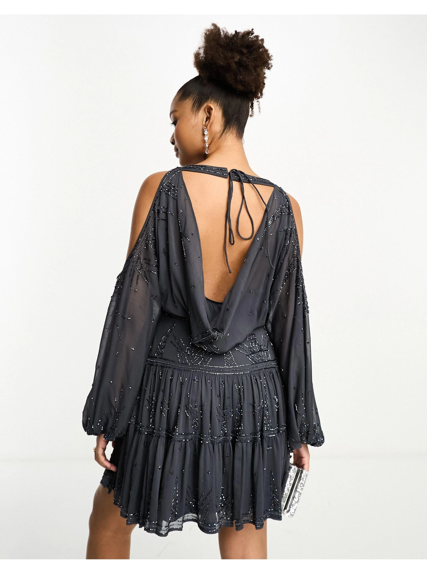 ASOS Cold Shoulder Embellished Tiered Mini Dress