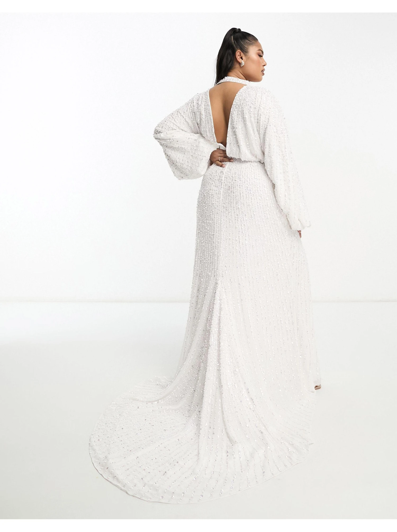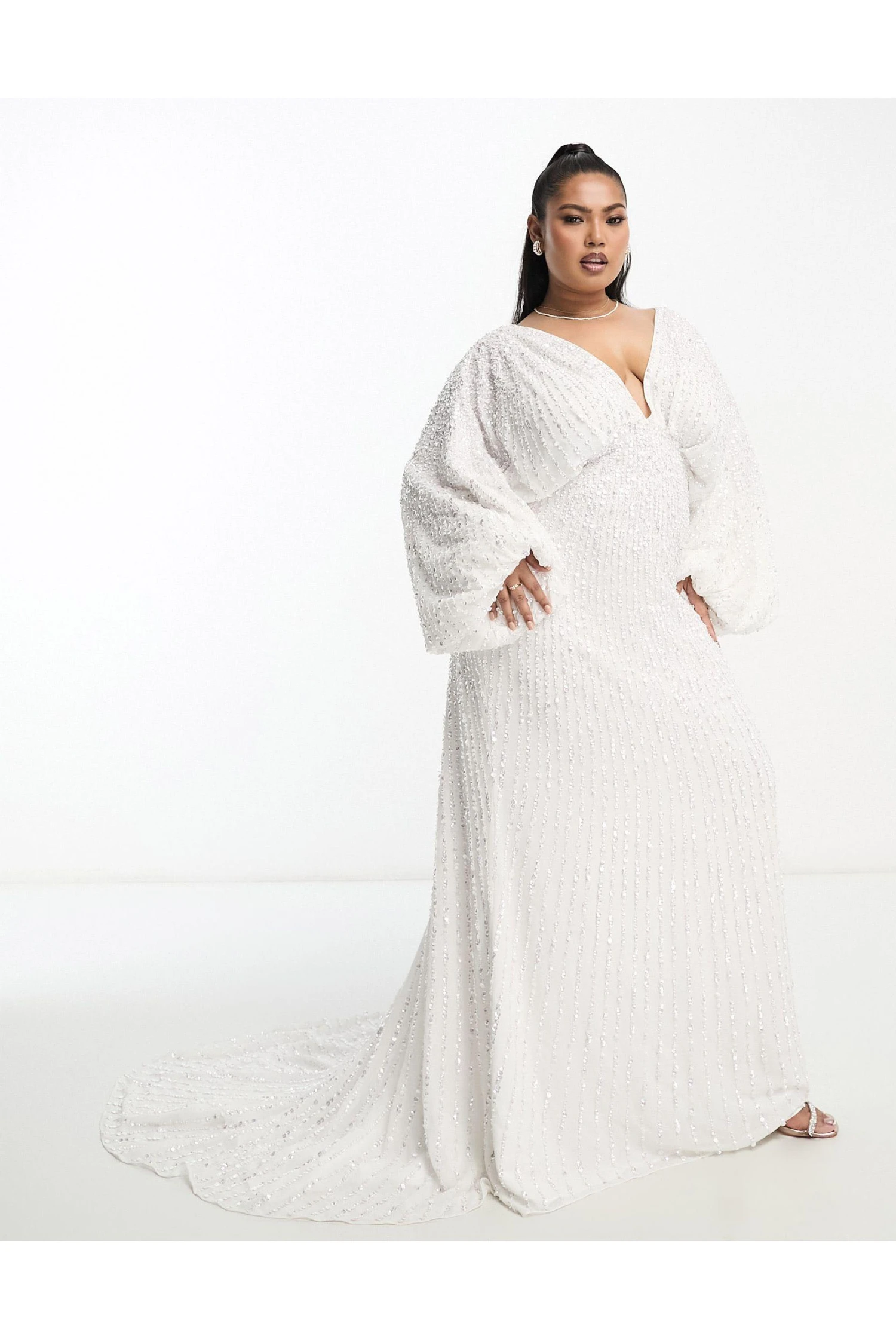 ASOS Curve Lennox Sequin Blouson Sleeve Wedding Dress With Train