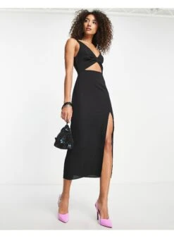 Dresses by ASOS DESIGN This dress + you = perfect match Plunge neck Cut-out to waist Thigh-high split Slim fit. Polyester/Elastane. Colour: black