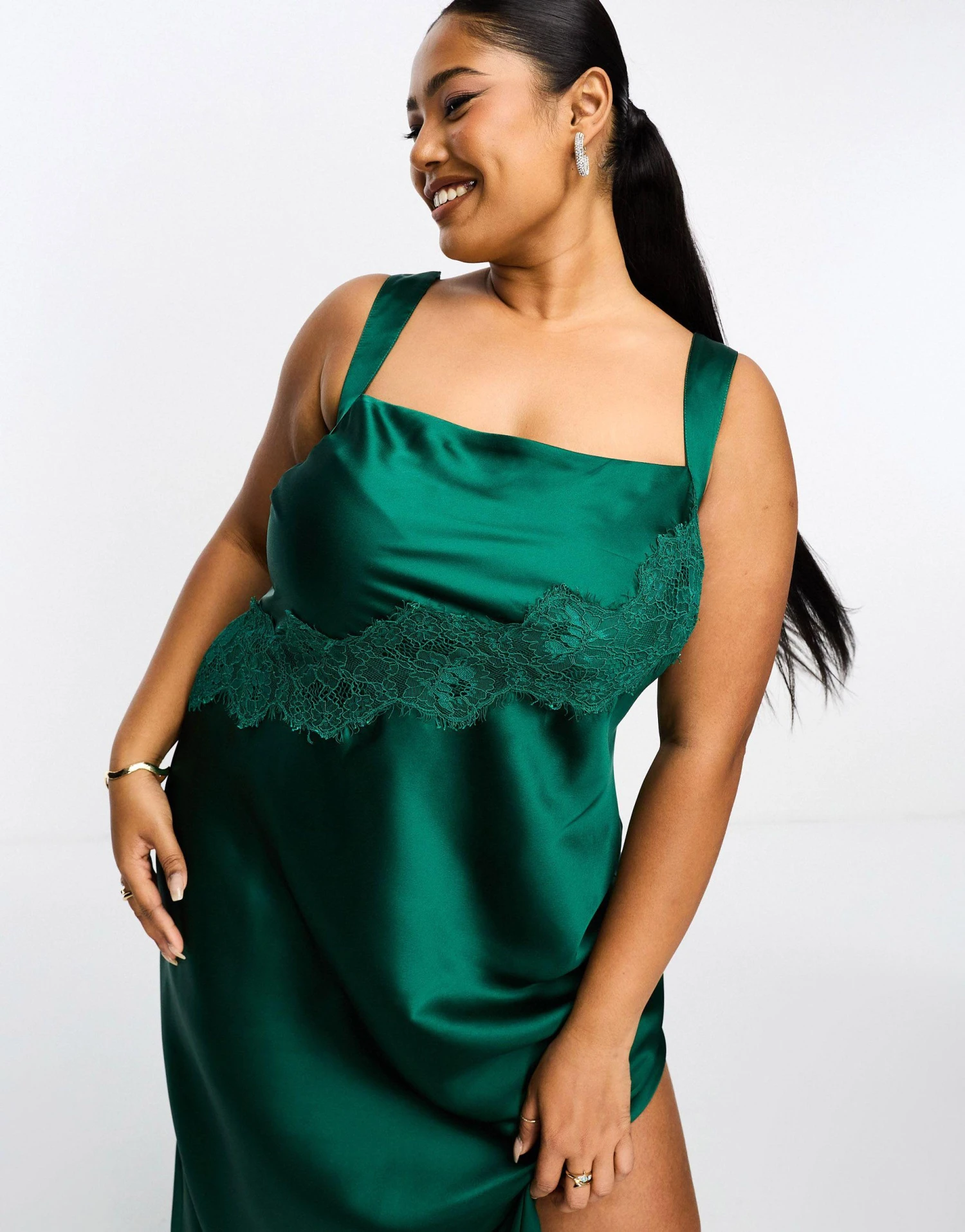 Asos Design Curve Exclusive Satin Lace Applique Detail Maxi Dress