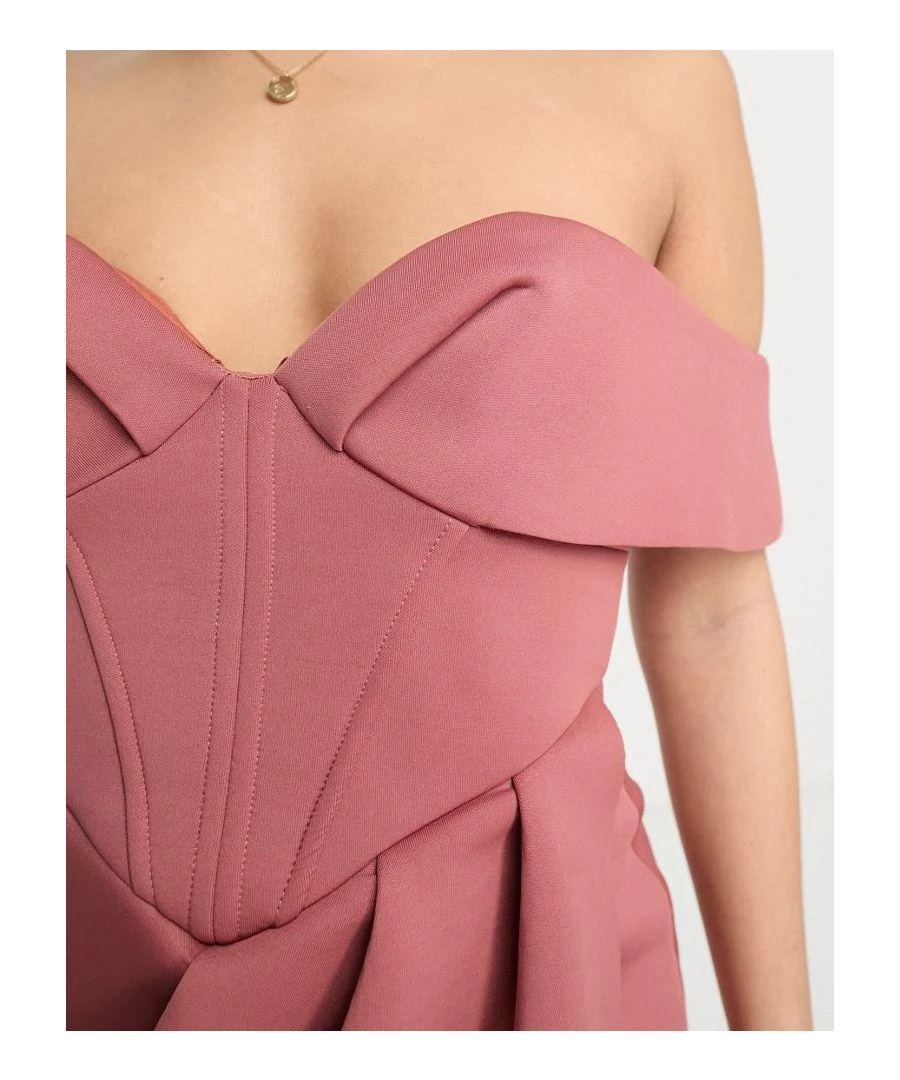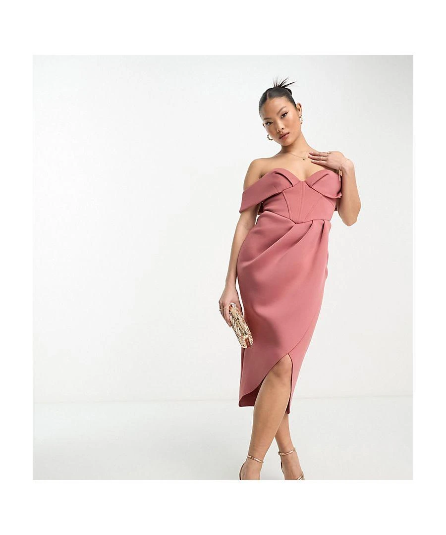 ASOS Design Off Shoulder Corset Midi Wrap Skirt Dress