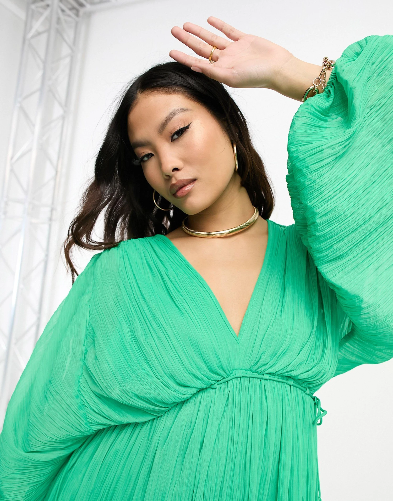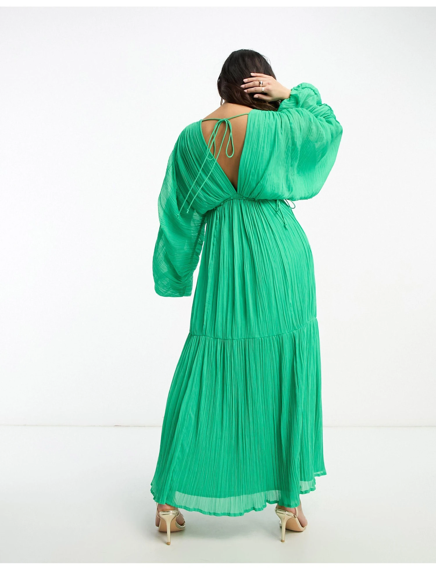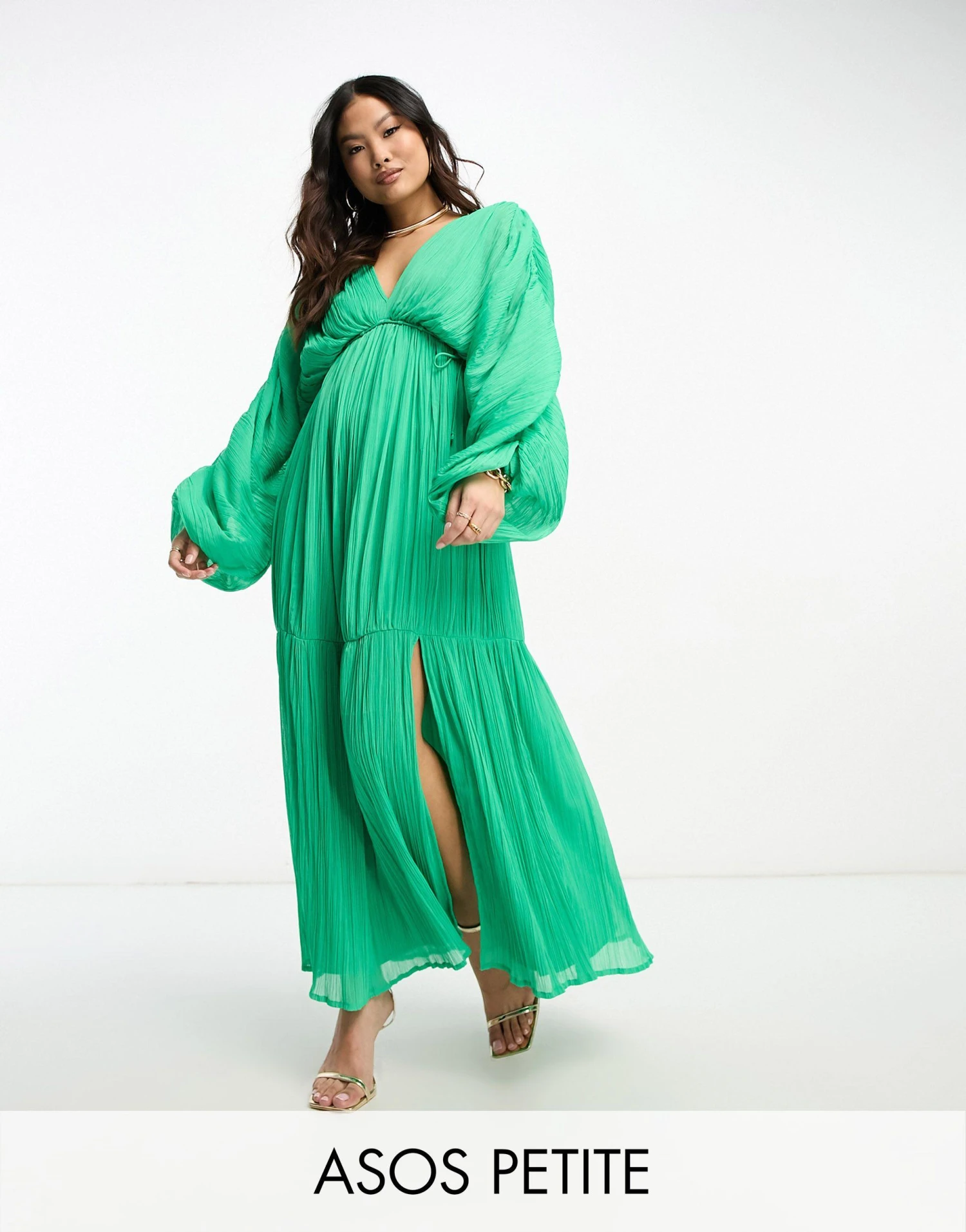 Asos Design Petite Micro Pleated Batwing Trapeze Maxi Dress