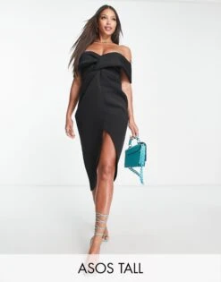 Asos Design Tall Twist Front Off The Shoulder Midi Dress