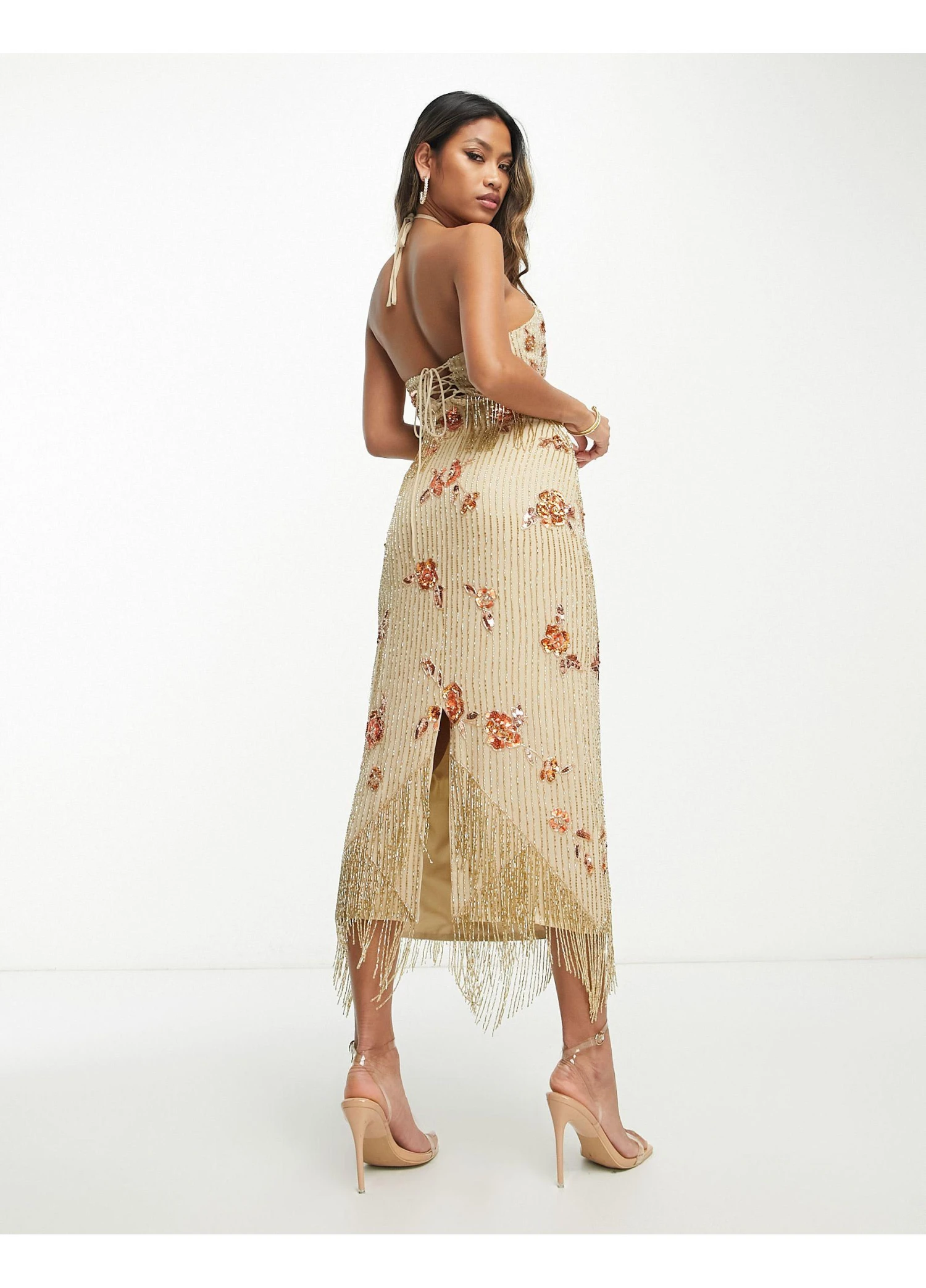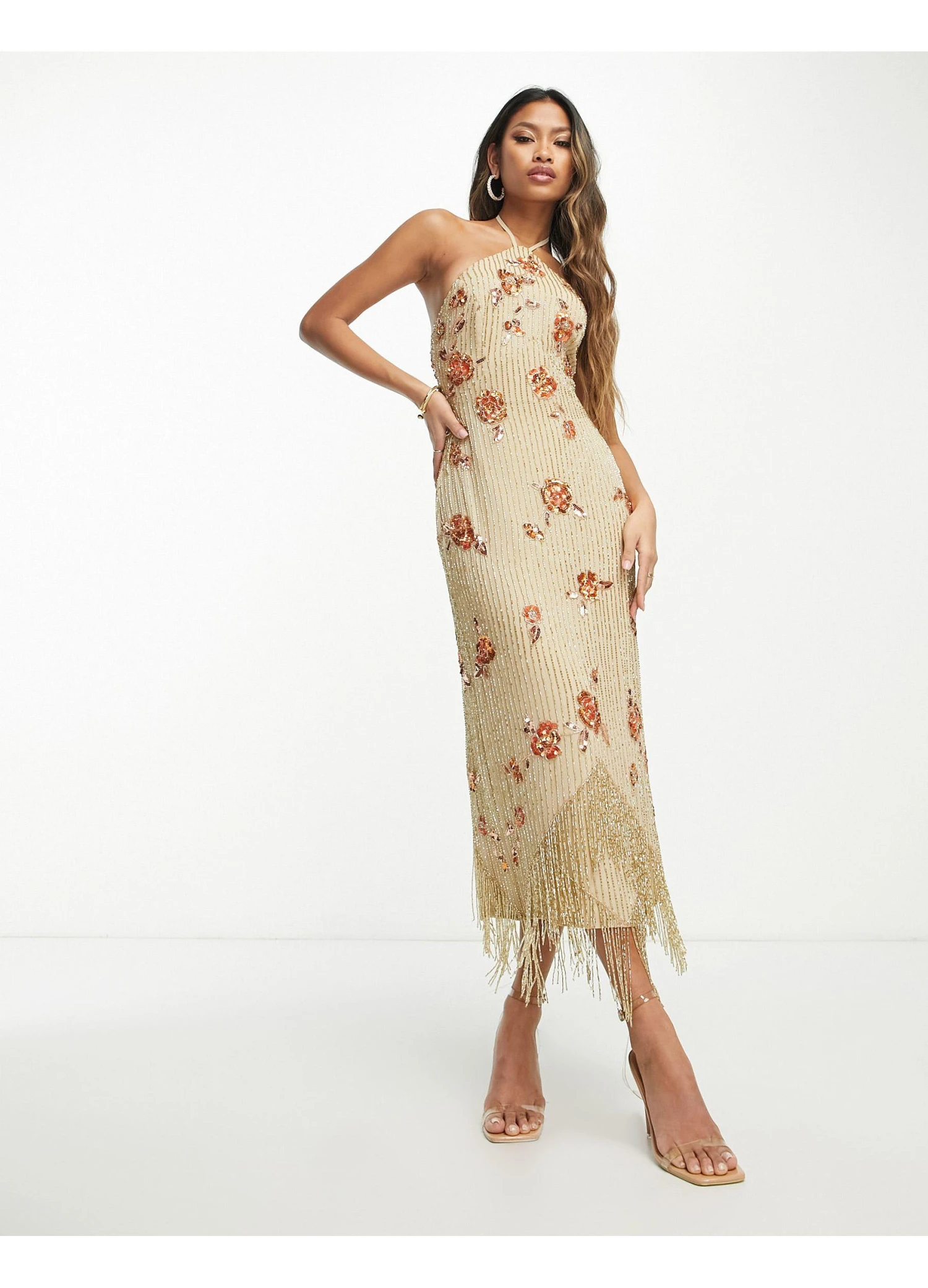 ASOS Halter Embellished Midi Dress With Floral Beading Detail