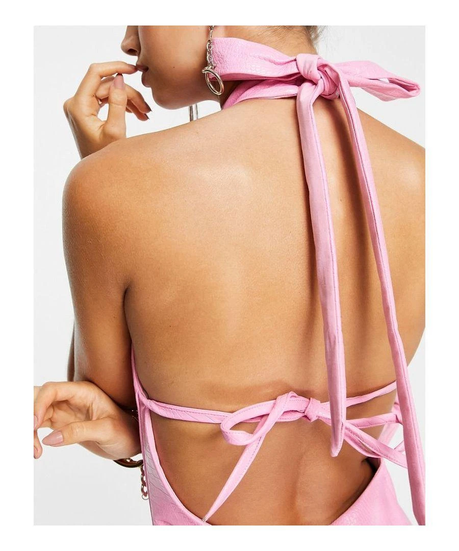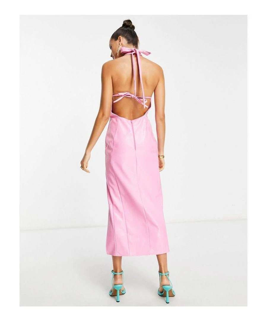 Dresses by ASOS DESIGN The kind of dress that deserves attention Mock-croc design Halterneck style Tie detail to reverse Zip-back fastening Thigh-high split Slim fit Sold by Asos. Colour: pink