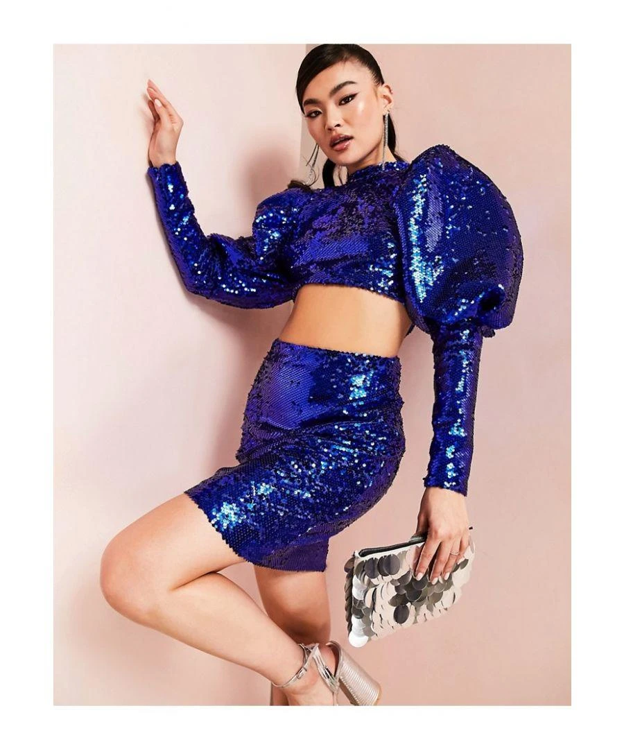 ASOS High Neck Puff Sleeve Cut Out Sequin Mini Dress