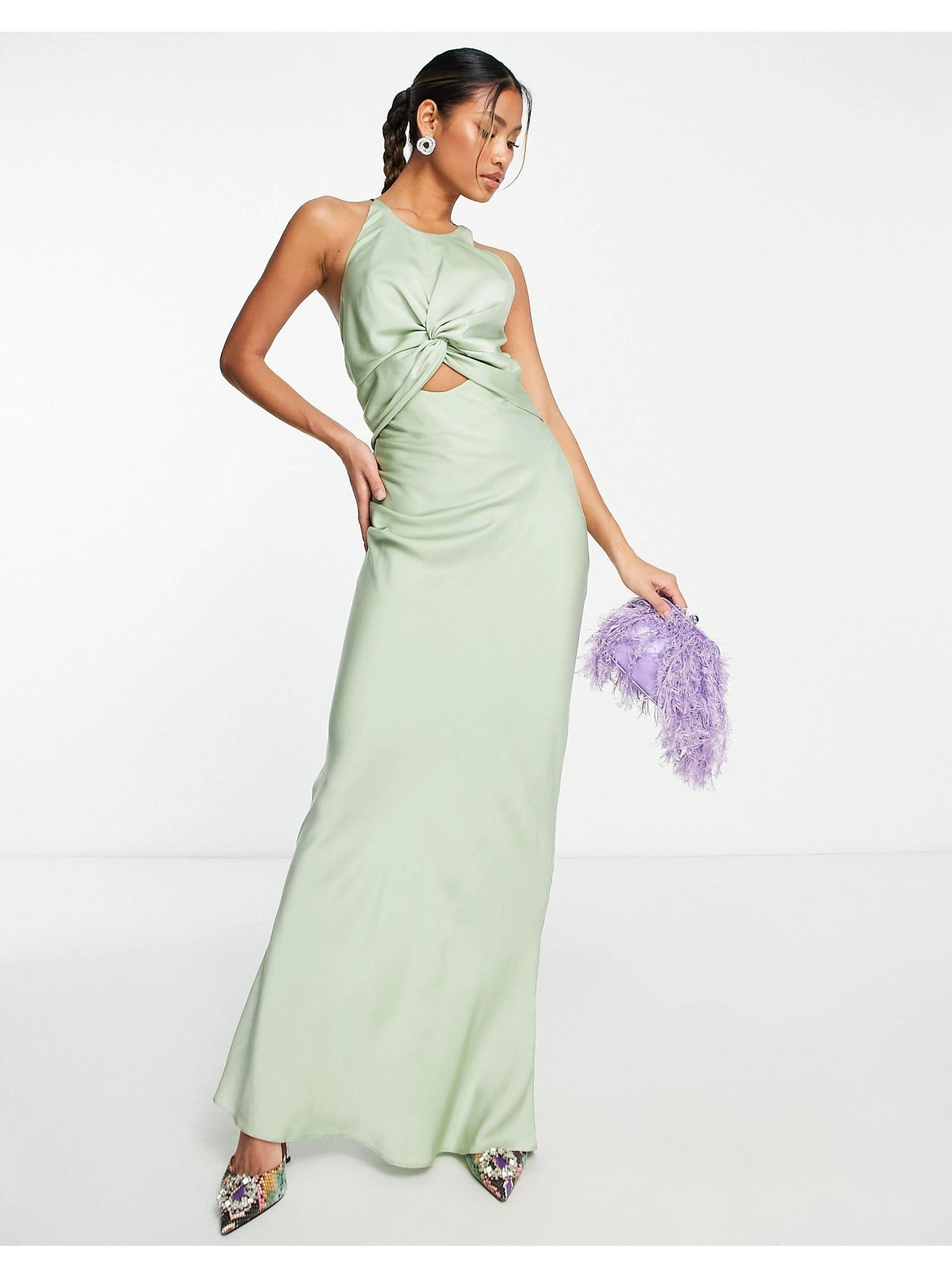 ASOS Knot Front Satin Maxi Dress With Tie Back Detail