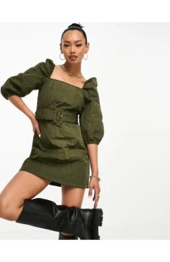Dresses by ASOS DESIGN This dress + you = perfect match Square neck Volume sleeves Belt detail Zip-back fastening Regular fit. Colour: green