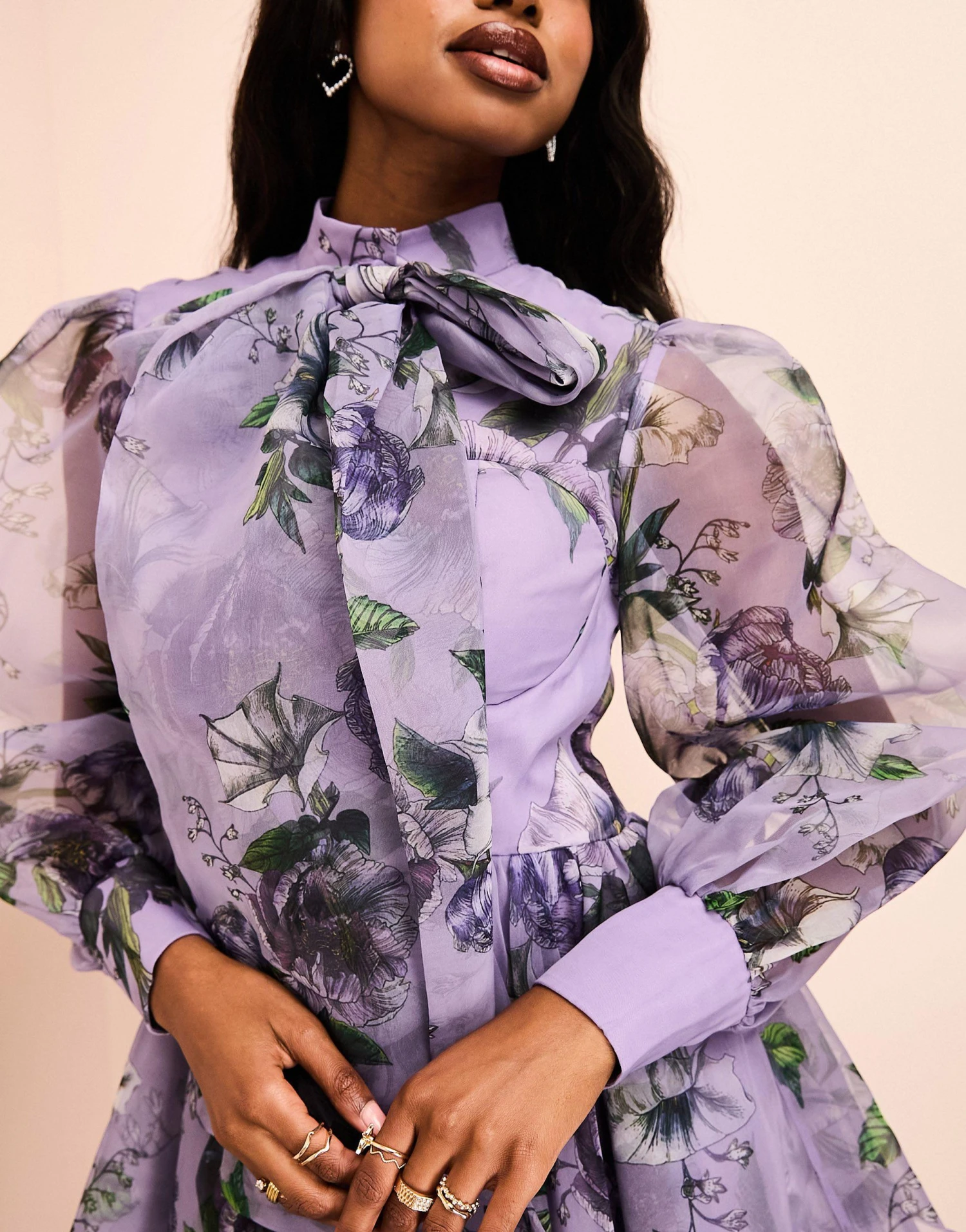 Dresses by ASOS Luxe There’s dressing up, then there’s this Pussybow neck Cup detail Volume sleeves Tiered skirt Regular fit. Colour: purple