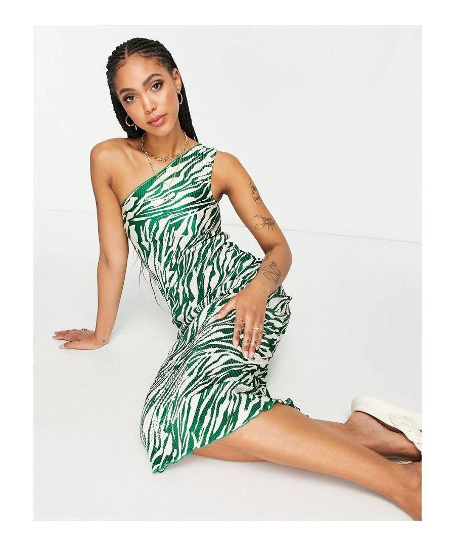 Midi dress by ASOS DESIGN The scroll is over Zebra print One-shoulder style Slim fit Sold by Asos. Colour: white