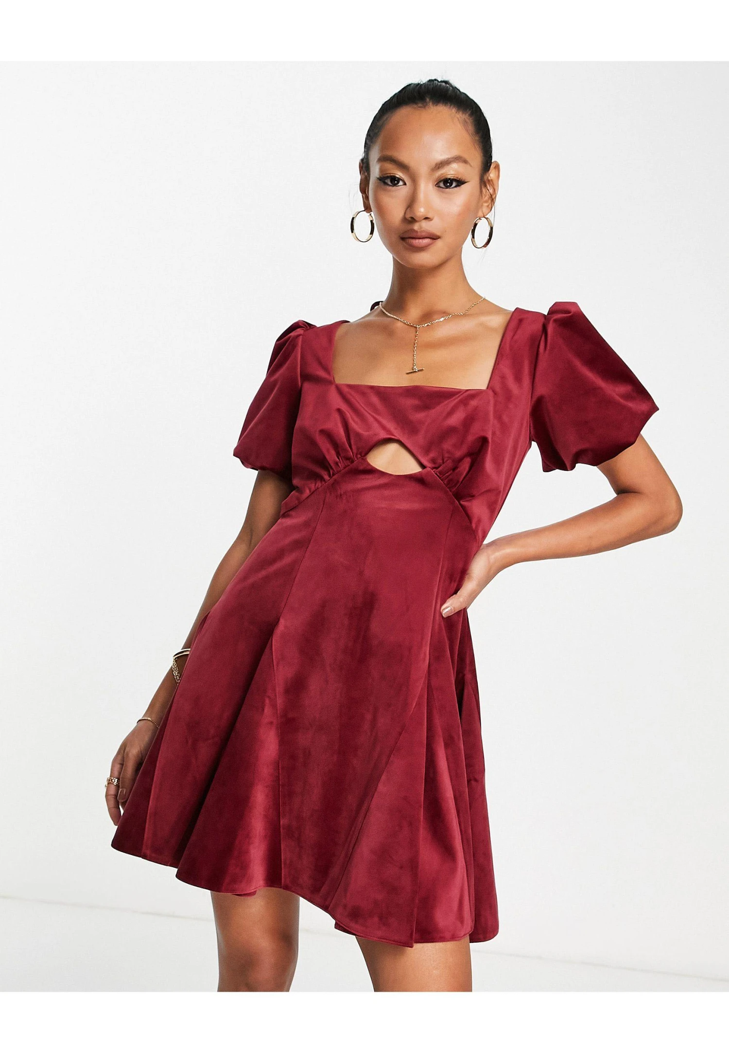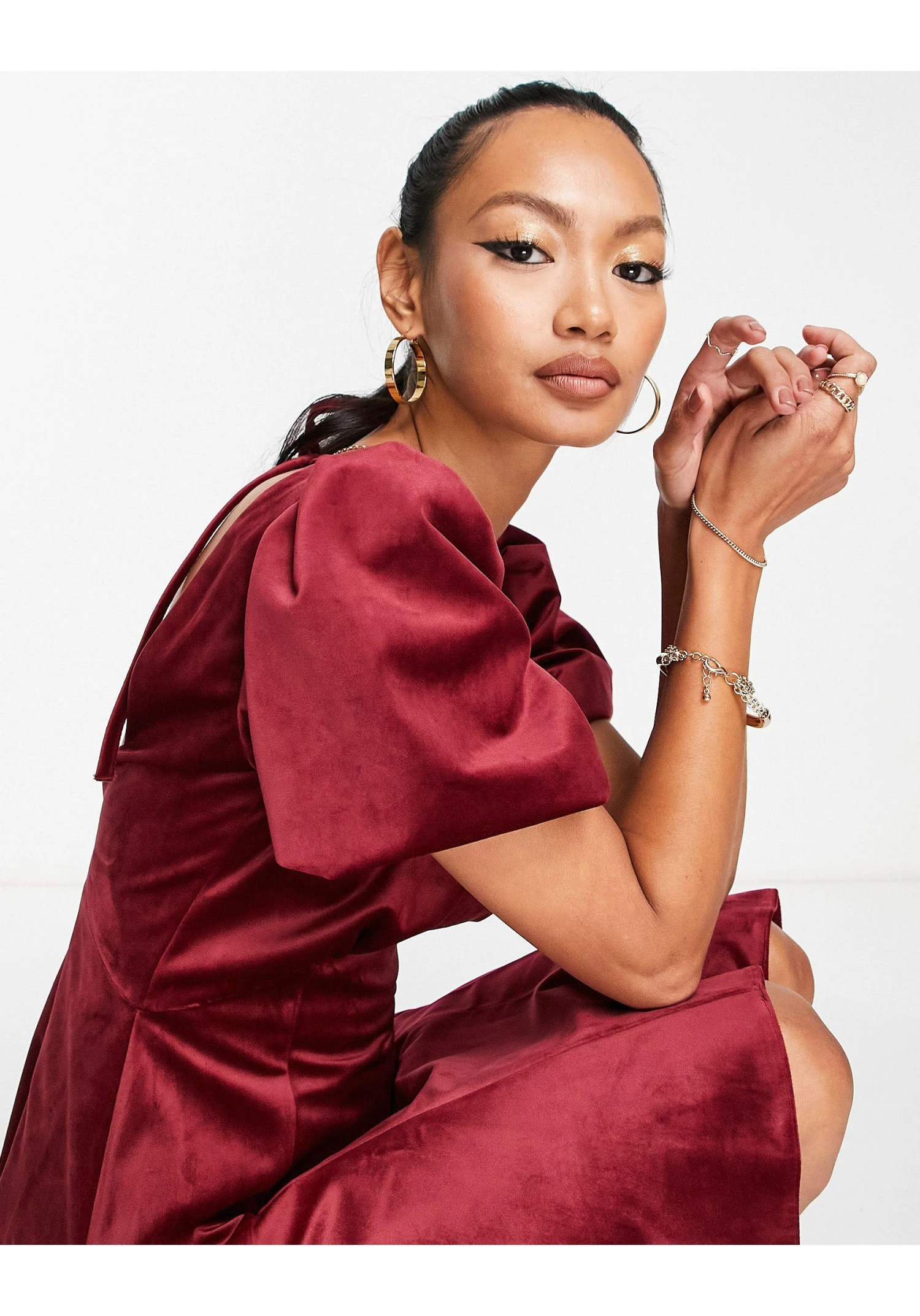 Dresses by ASOS DESIGN All other dresses can go home Square neck Puff sleeves Cut-out detail Tie back Regular fit. Colour: red