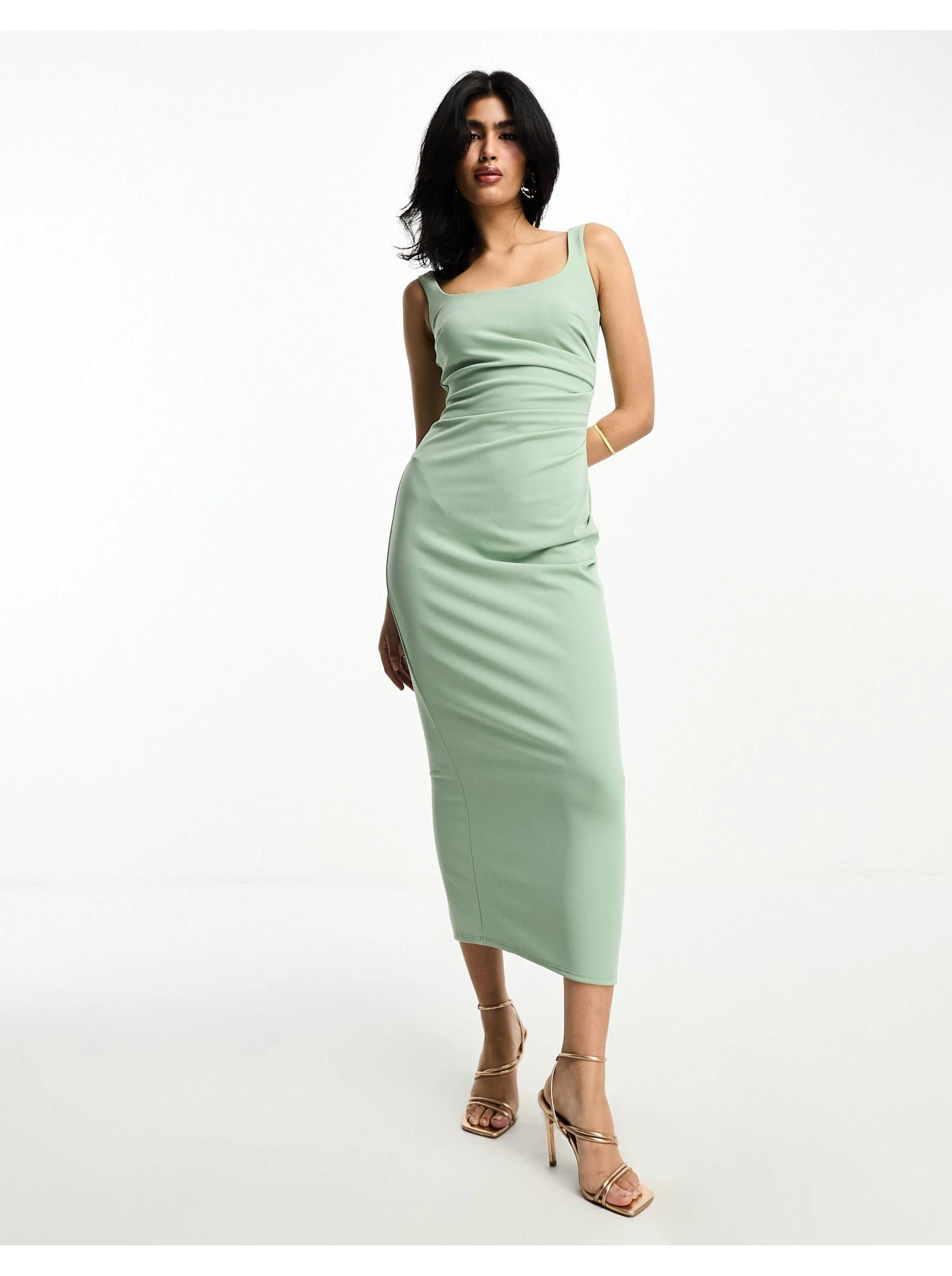 ASOS Square Neck Cami Midi Dress With Ruched Drape Detail