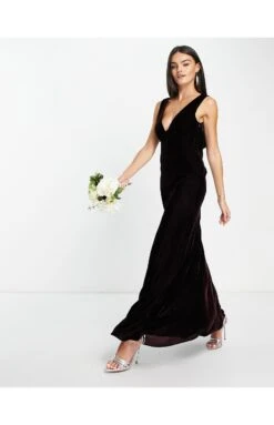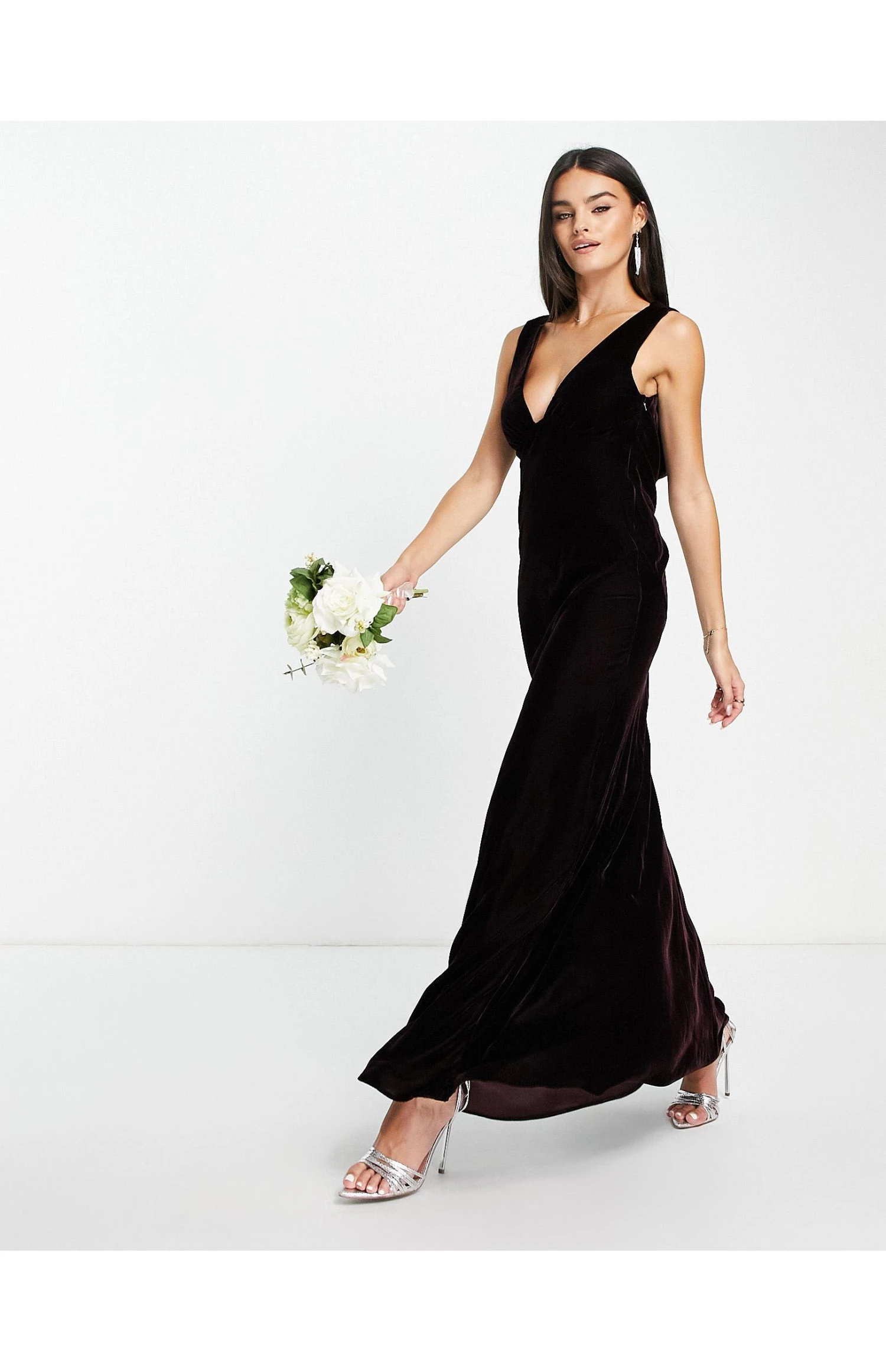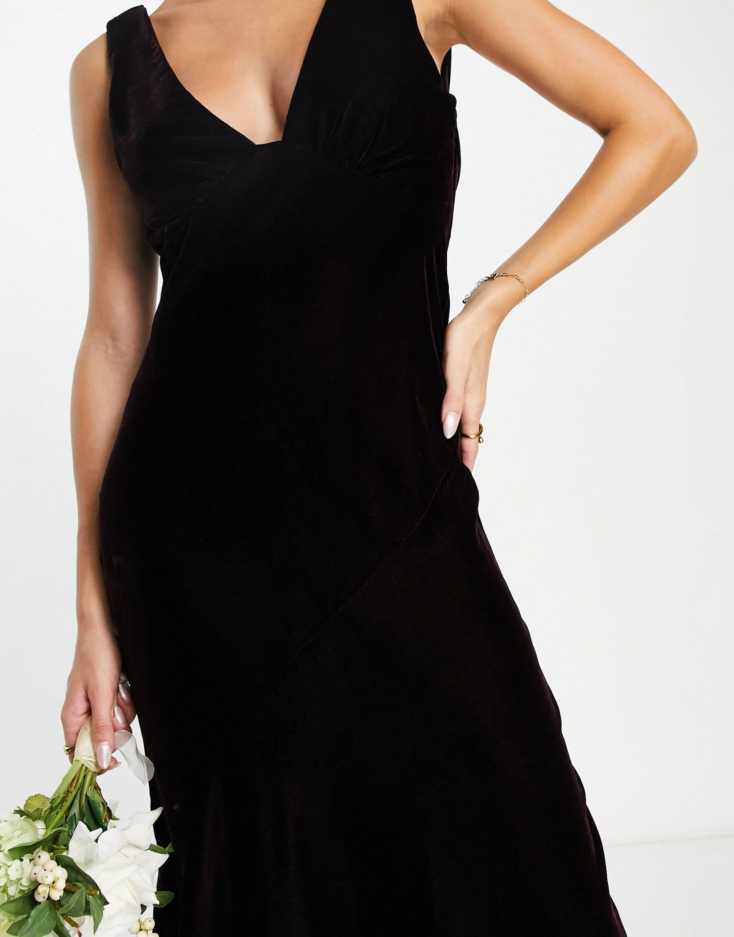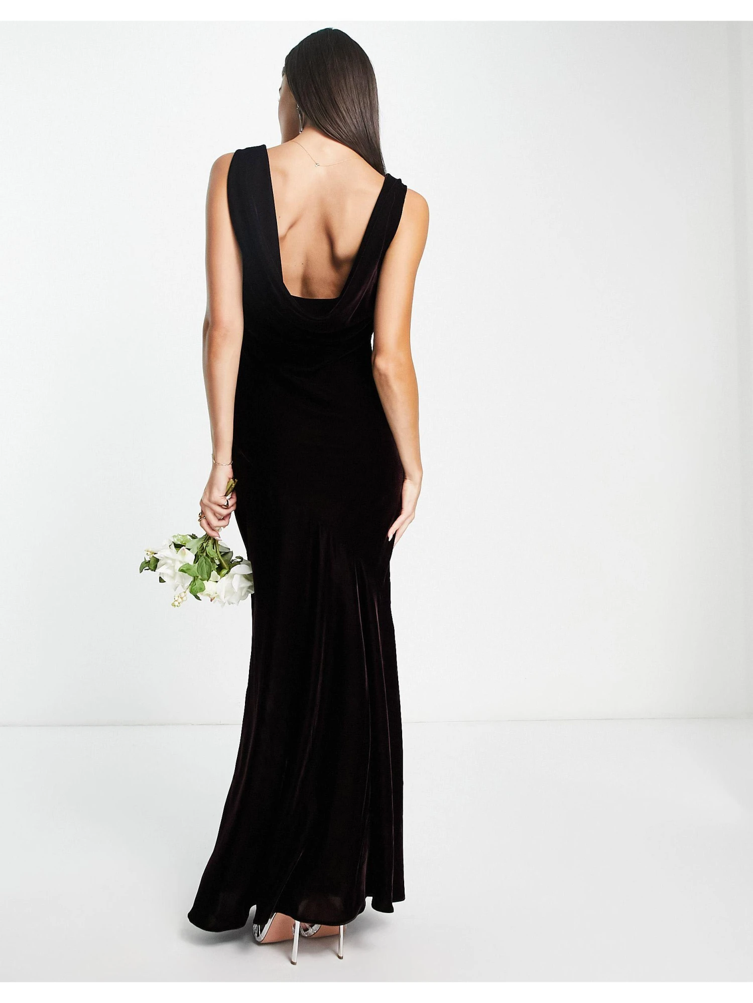 ASOS Velvet Ruched Bodice Maxi With Drape Cowl Back