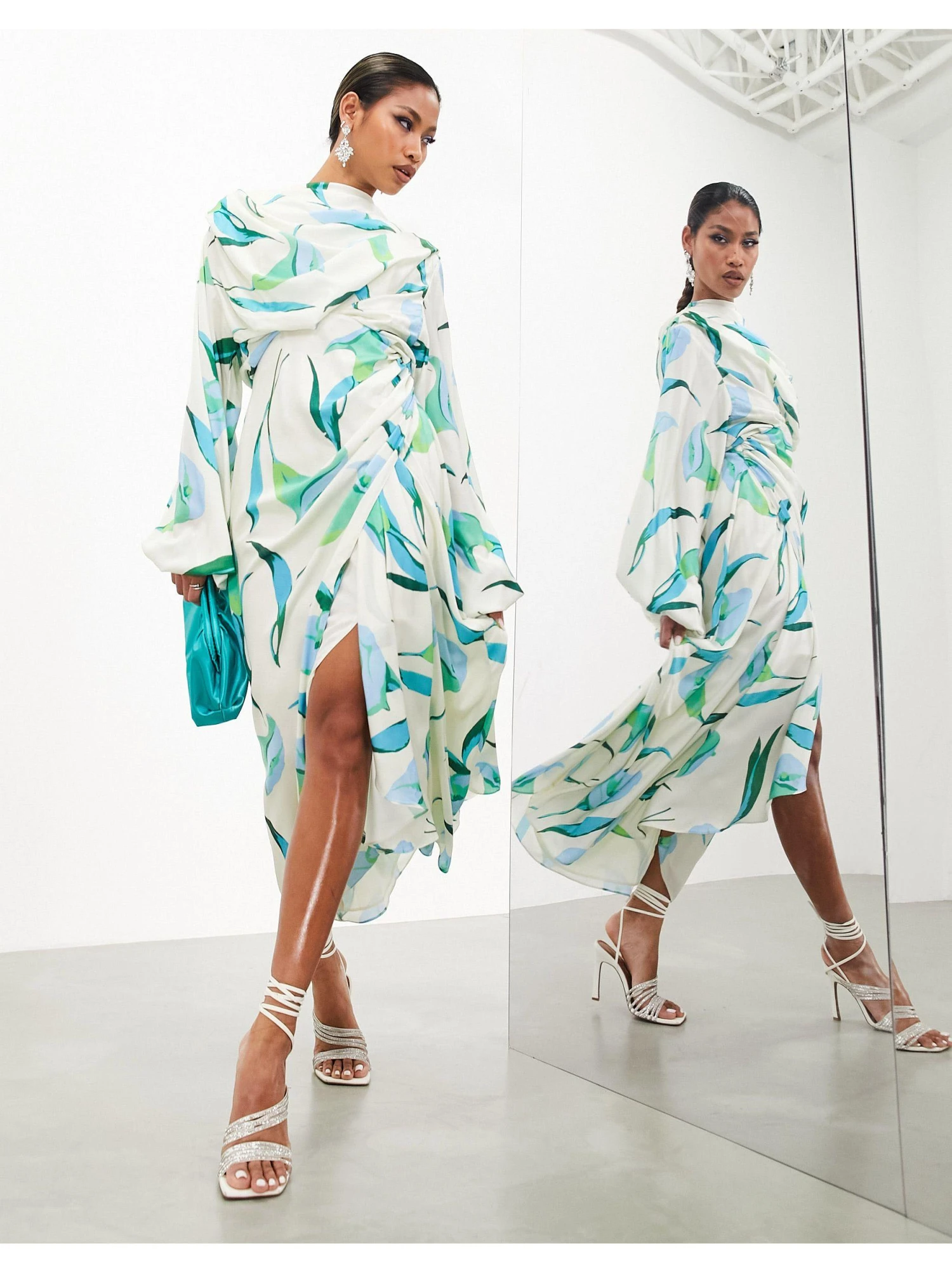 ASOS Volume Blouson Sleeve Satin Midi Dress