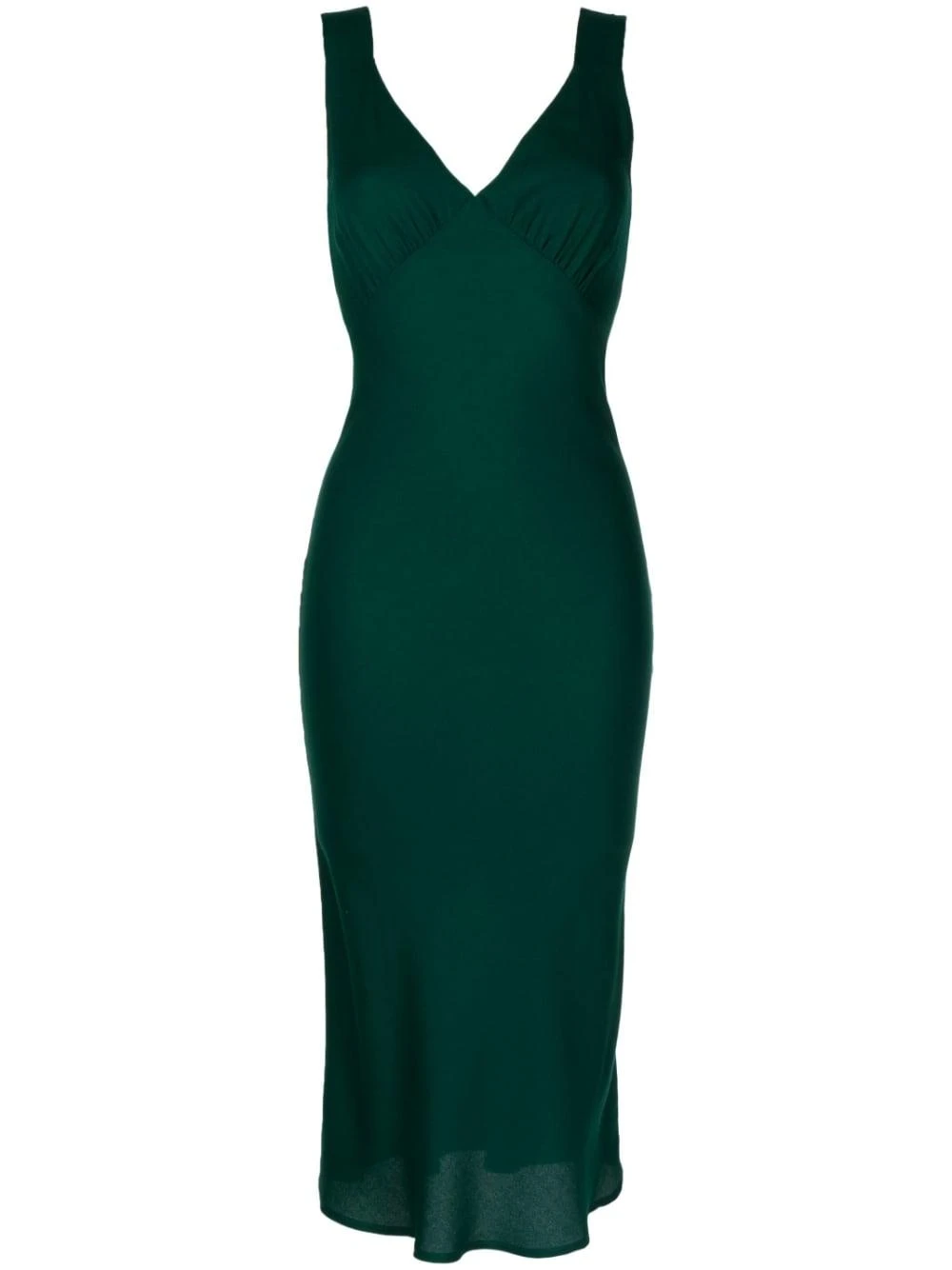 Beauden V-neck midi dress from Reformation featuring emerald green, V-neck, sleeveless, wide shoulder straps and straight hem. We’ve partnered with Good On You — an independent agency that rates how brands perform in relation to their impact on the planet, people and animals, with a multi-criteria rating simplified to a five points scale. In order to be awarded our conscious label, larger brands need to score a minimum of four out of five (‘Good’), while smaller brands must score at least three out of five (‘It’s a start’). This item comes from a brand rated four out of five (‘Good’) by Good on You. Please note, this is a brand-level rating and does not guarantee that this product is made with conscious materials. Learn more about what makes a product Conscious on our Conscious Criteria page. This item may not be on sale in France, UK, Italy, Belgium and Switzerland.