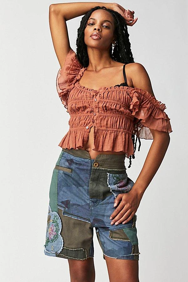 FREE PEOPLE Blue Horizon Patched Shorts
