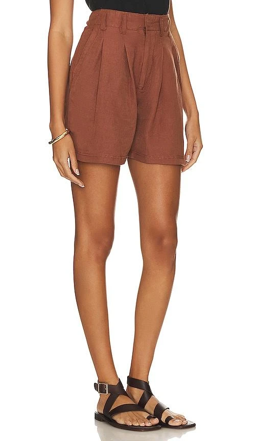 Free People Calla Linen Trouser Short in Brown. Size 2, 4, 6. 54% linen 46% viscose. Made in India. Machine wash. Zip fly with hook and bar closure. 3-pocket styling. Lightweight linen fabric. Shorts measure approx 16.25 in length. Free People invokes a spirit of femininity and creativity. Throughout their line of sweaters, tees, dresses and more, each piece incorporates a high level of quality and originality that reflects their adventurous it girl. With all that’s constricting in the world today, Free People says your clothes don’t have to be. Be yourself, be creative, be free.