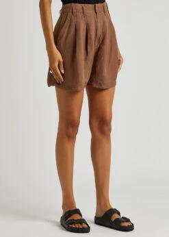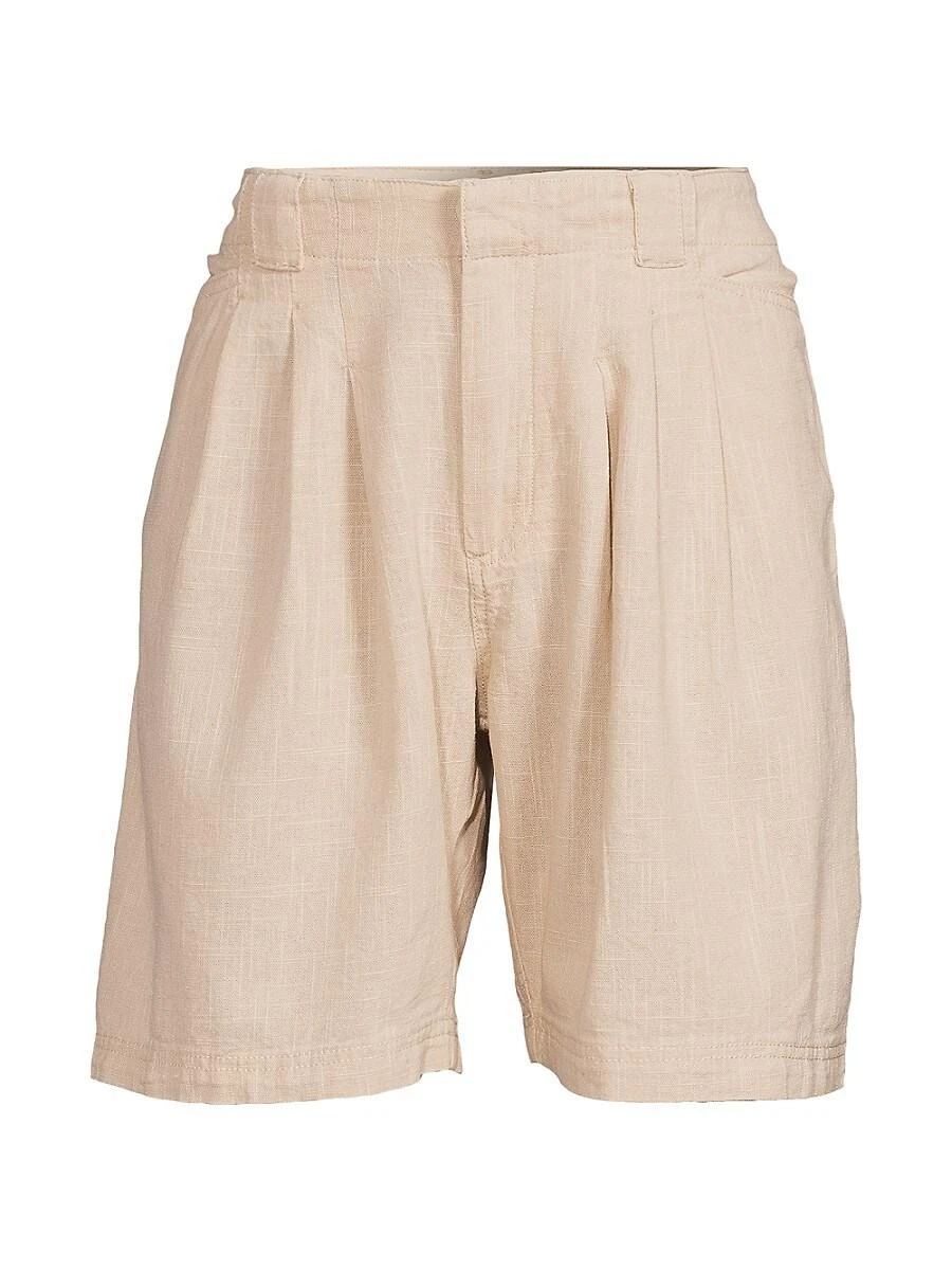 Belt loops. Button front. Zip fly. Side slip pockets. Back pockets. Cotton. Machine wash. Rise, about 9”. Inseam, about 7”. Leg opening, about 24”. Model shown is 5’10” (177cm) wearing US 4. Colour: natural