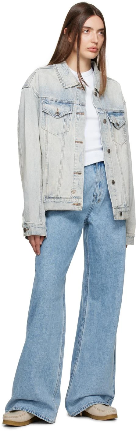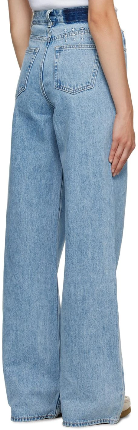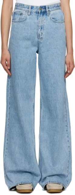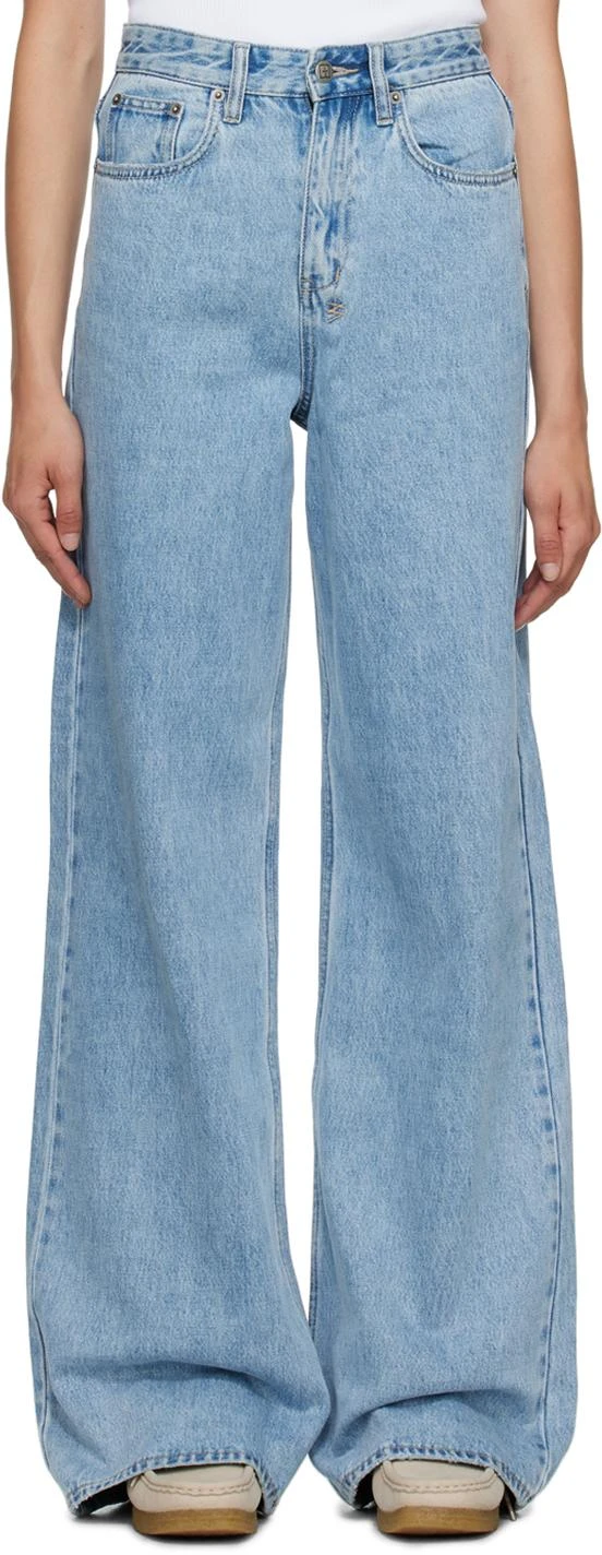 Wide-leg stonewashed non-stretch denim jeans. Fading throughout. Colour: blue