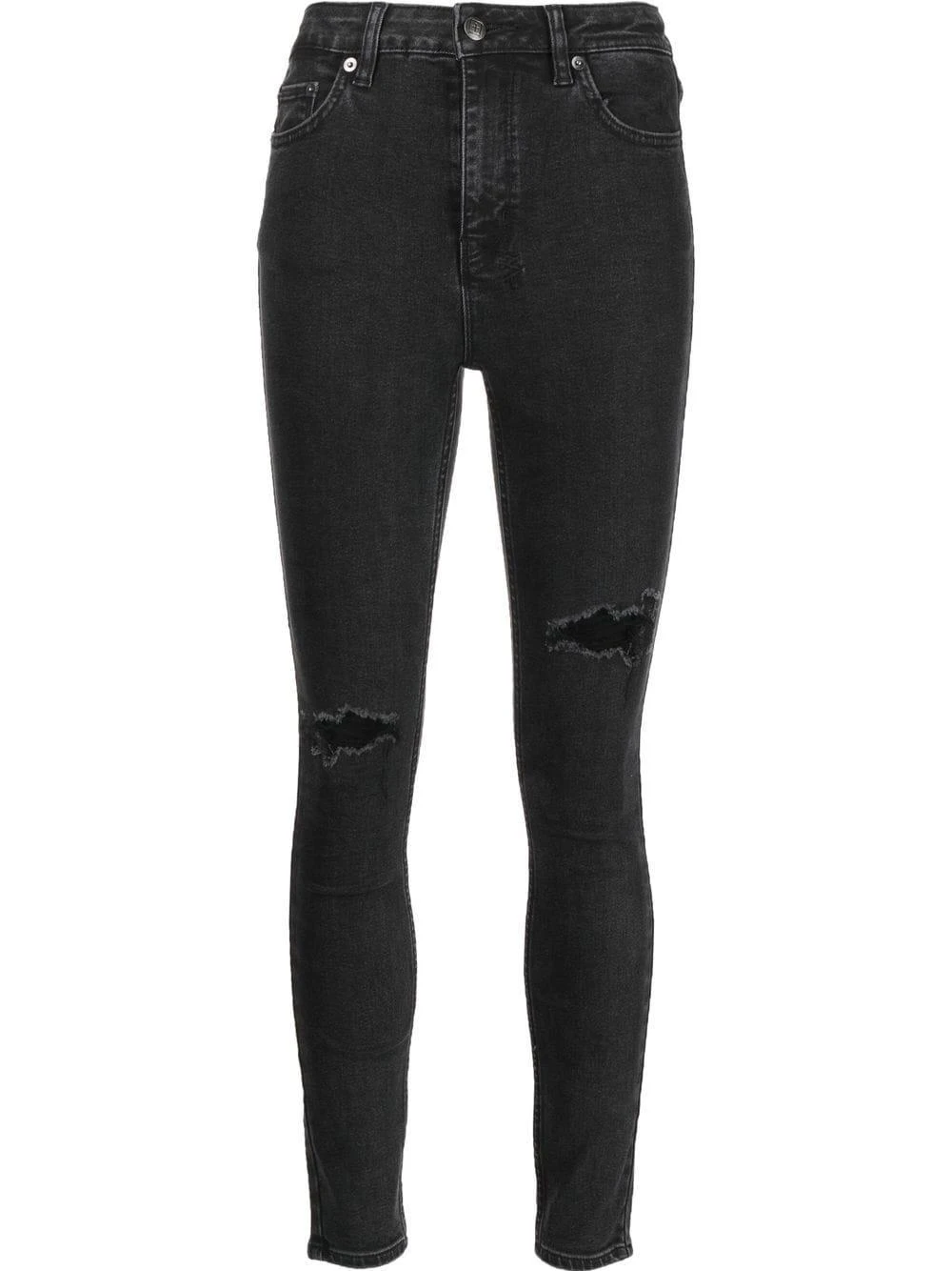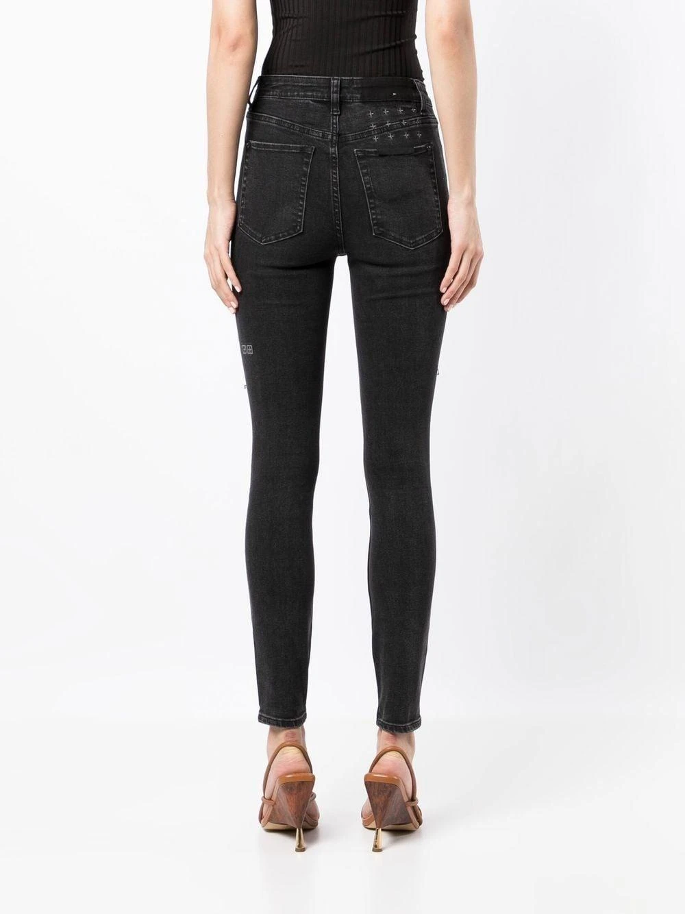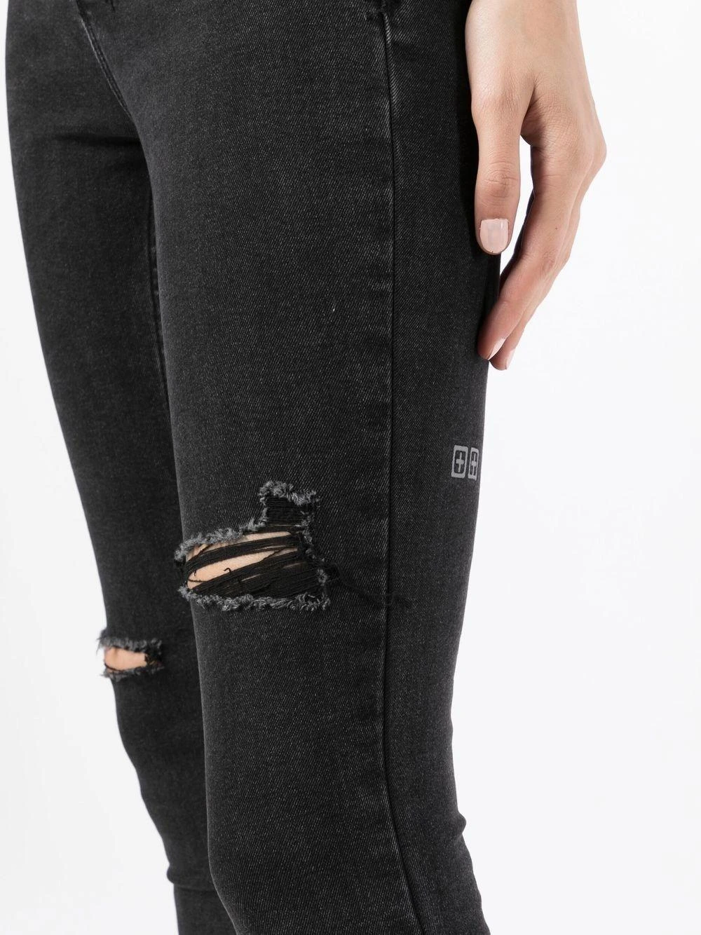 Skinny-cut distressed jeans from KSUBI featuring jet black, cotton blend, distressed effect, front button fastening, two diagonal pockets to the sides, two rear patch pockets and skinny cut. This item may not be on sale in France, UK, Italy, Belgium and Switzerland. Colour: black