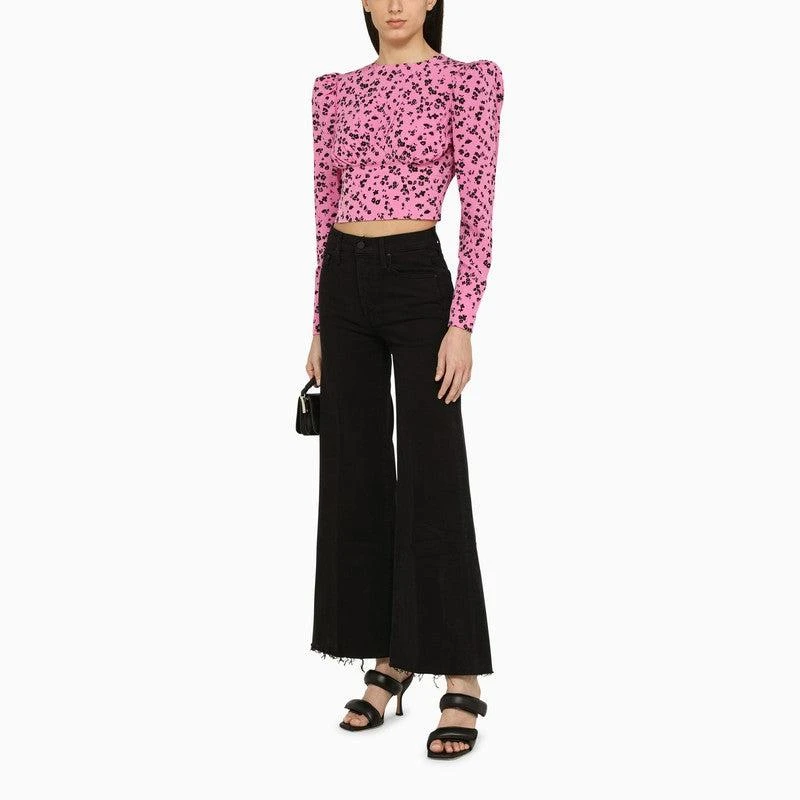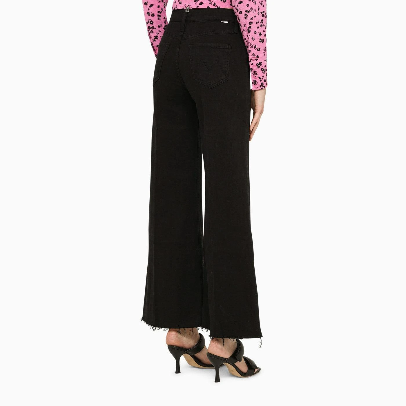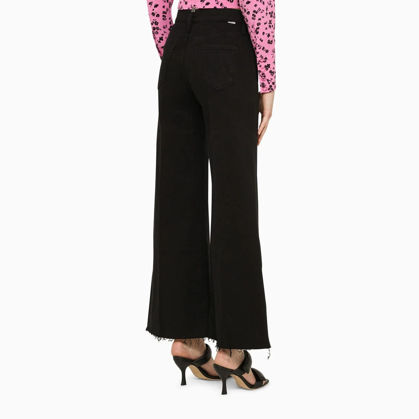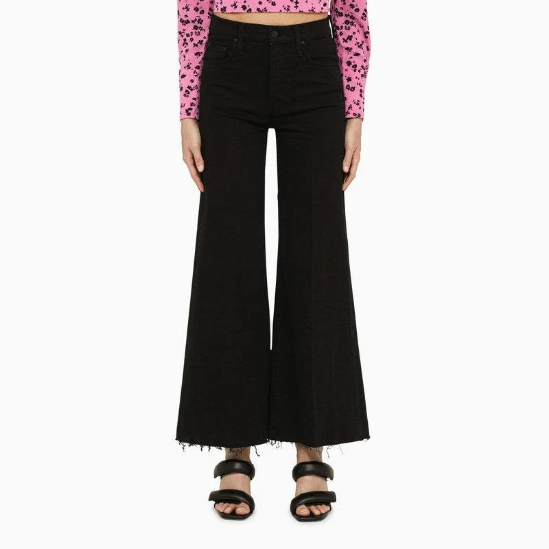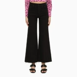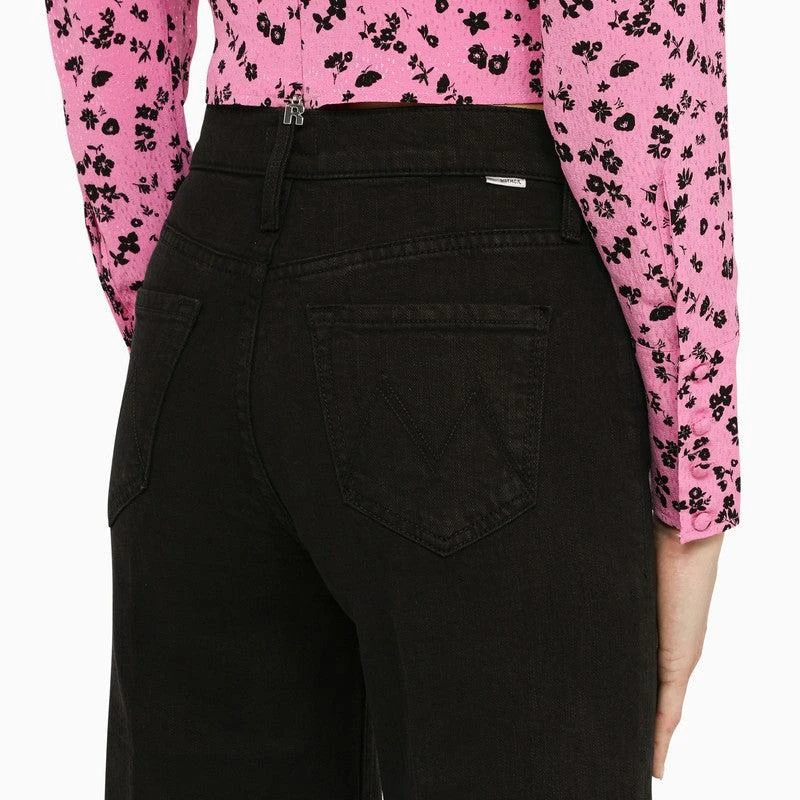 Flaired jeans by Mother in dark navy cotton denim, featuring high wasted, belt loops, front zip and button fastening, five pockets, rear logo print label and frayed hem. Model wears size 27 Model measurements: Height: 179 cm Chest: 82 cm Waist: 65 cm Hips: 90 cm. 98% Cotton – 2% Elastane. Colour: black