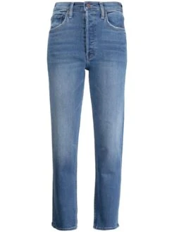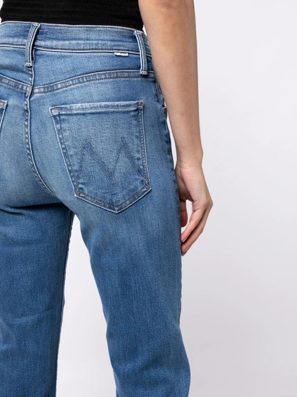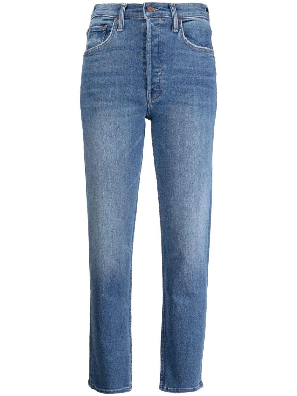 Front-fastening cropped jeans from MOTHER featuring blue, cotton blend, denim, stretch-design, front button and zip fastening, classic five pockets, belt loops, slim cut and cropped leg. We’ve partnered with Good On You — an independent agency that rates how brands perform in relation to their impact on the planet, people and animals, with a multi-criteria rating simplified to a five points scale. In order to be awarded our conscious label, larger brands need to score a minimum of four out of five (‘Good’), while smaller brands must score at least three out of five (‘It’s a start’). This item comes from a brand rated four out of five (‘Good’) by Good on You. Please note, this is a brand-level rating and does not guarantee that this product is made with conscious materials. Learn more about what makes a product Conscious on our Conscious Criteria page. This item may not be on sale in France, UK, Italy, Belgium and Switzerland. Colour: blue