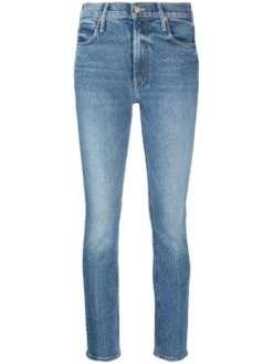 Low-rise slim cut jeans from MOTHER featuring blue, washed denim, organic cotton blend, low-rise, belt loops, front button and zip fastening, classic five pockets and slim cut. Conscious: This product contains at least 70% certified organic content. This item may not be on sale in France, UK, Italy, Belgium and Switzerland. Colour: blue