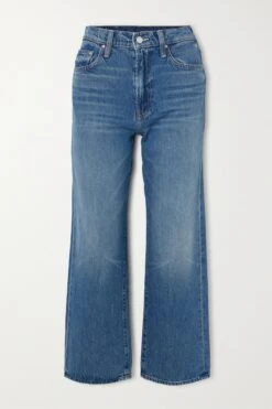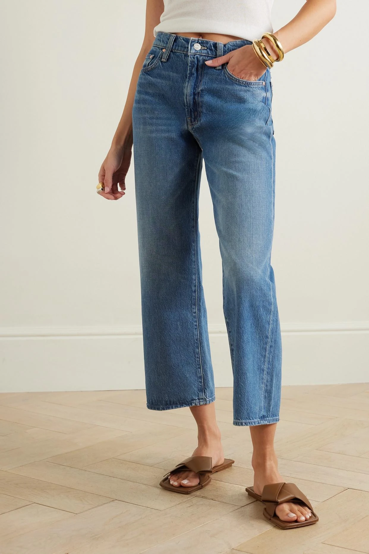 MOTHER + Net Sustain + Bowie The Rambler Zip Cropped Embellished Straight-leg Jeans