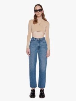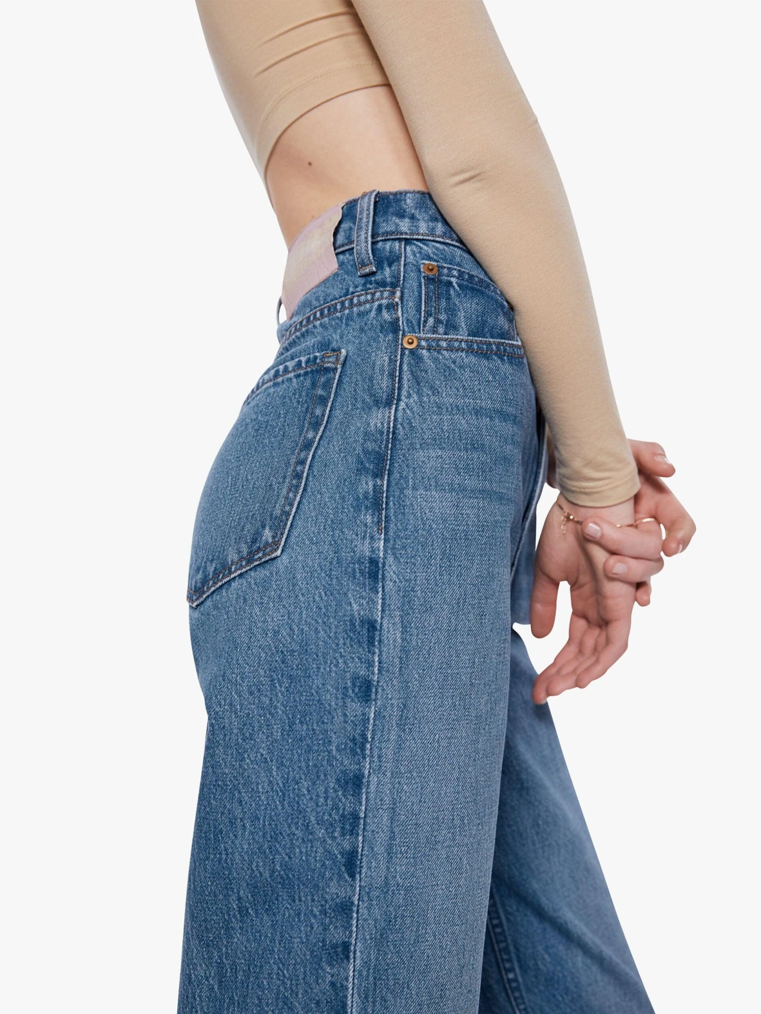 In for a treat. A straight-leg jean from snacks! Mother’s homage to throwback styles of the 80s and 90s, reimagined for a new generation. The high-rise jeans feature a loose fit, fuller straight leg and clean ankle-length inseam. Made from rigid 100% cotton, delicious memories is a vintage blue wash that channels the nostalgia of snack time with a pretzel-detailed button and candy-inspired interior rivets. These jeans are rigid and take time to break in. Mother says patience is a virtue. Made in los angeles. Colour: blue