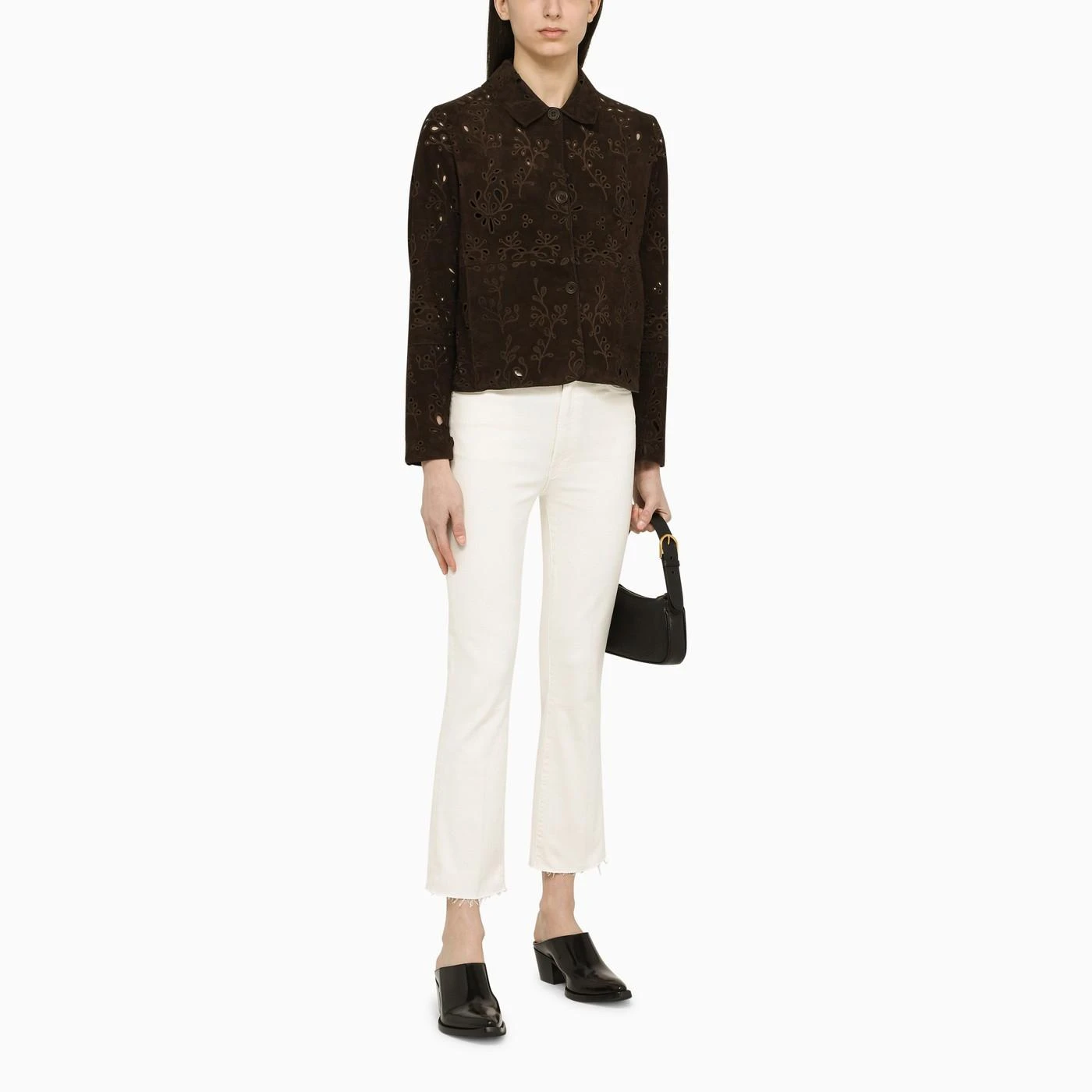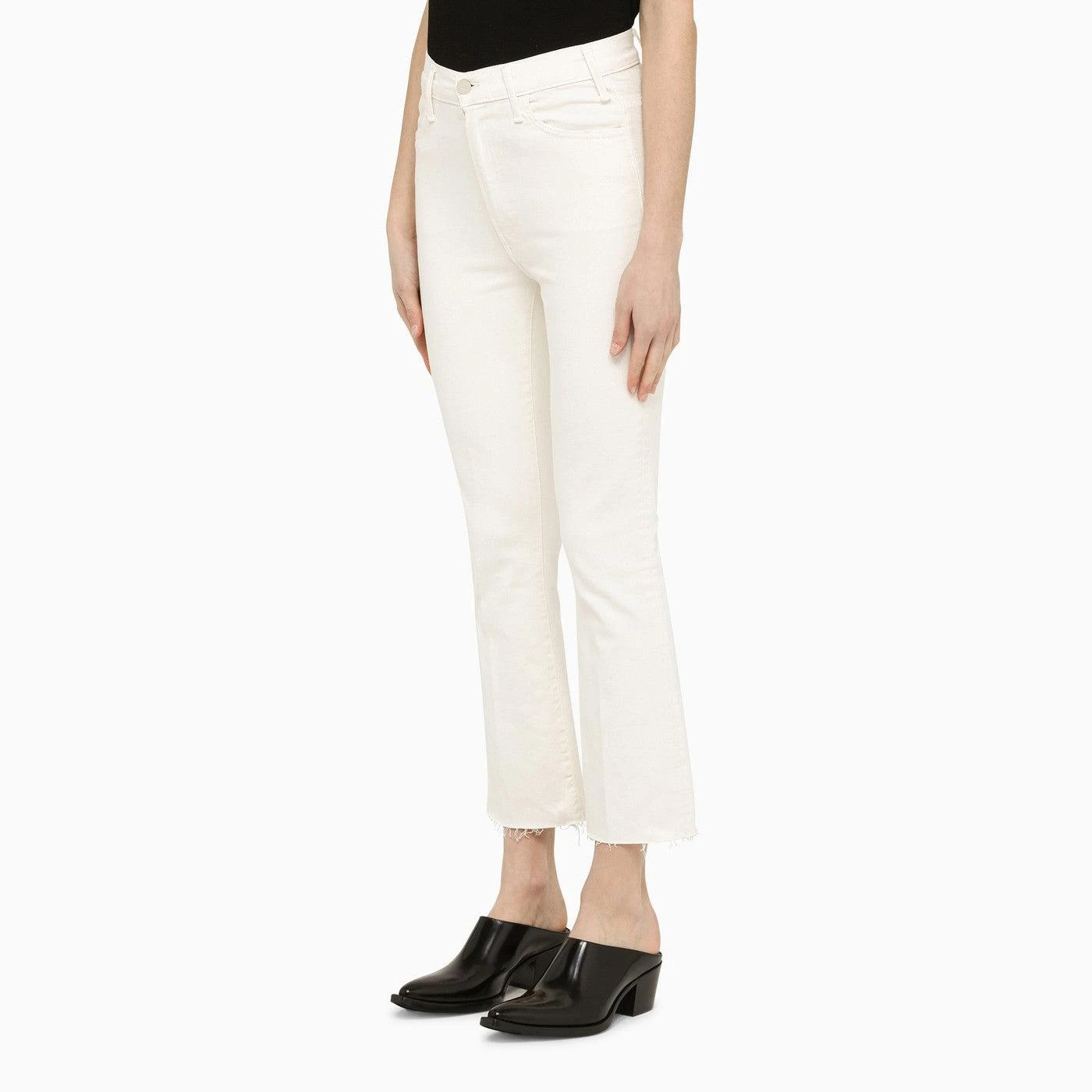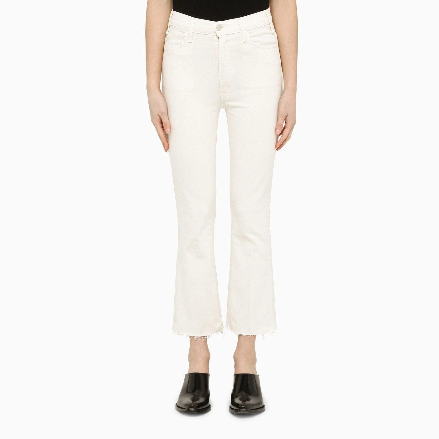 Cropped jeans by Mother in cream-coloured stretch cotton denim with slightly flared and frayed hem, five pockets and stitched logo on the back. Model wears size 27 Model measurements: Height: 179 cm Chest: 82 cm Waist: 65 cm Hips: 90 cm. 94% Cotton – 4% Polyester – 2% Elastane. Colour: white
