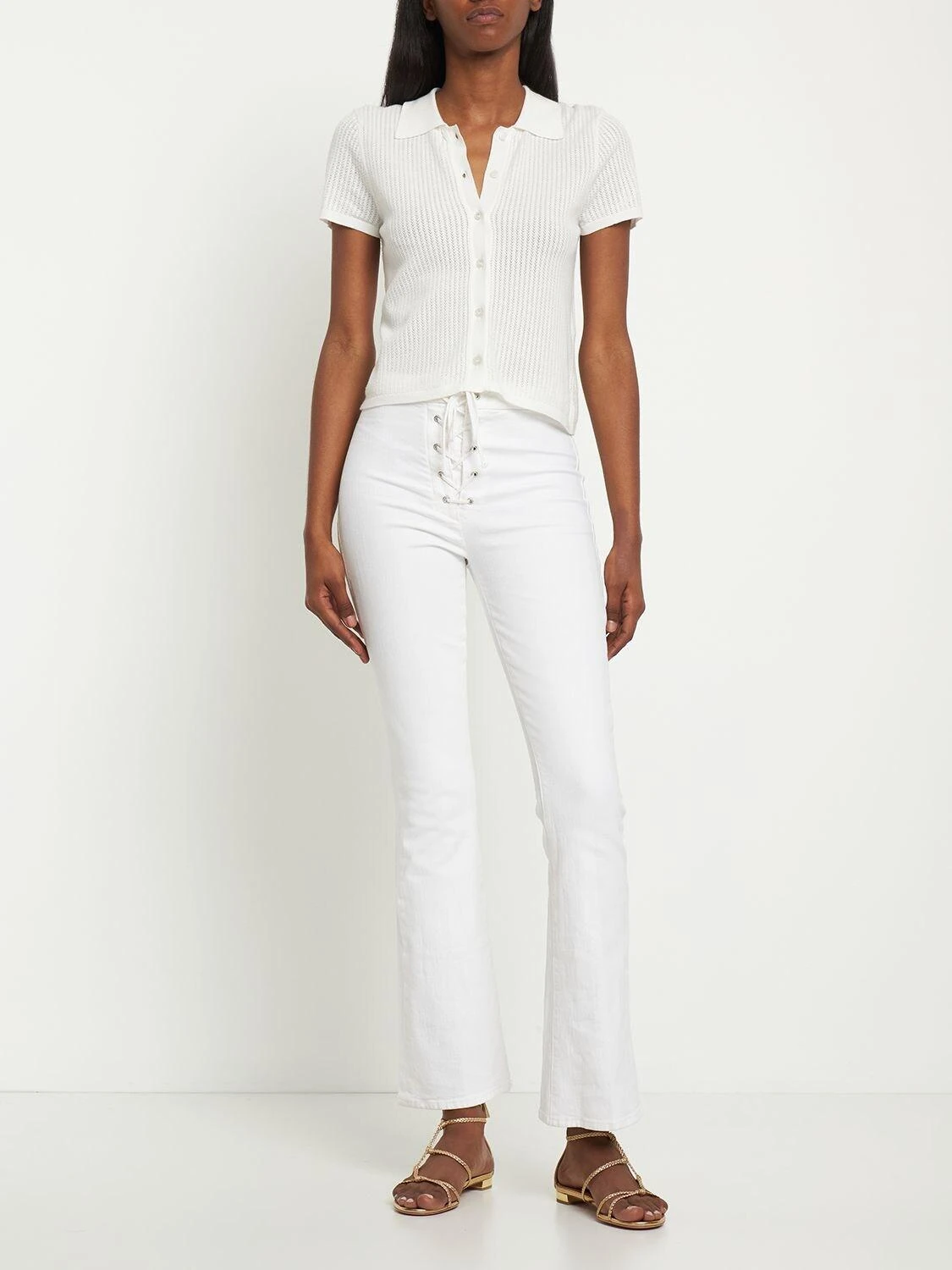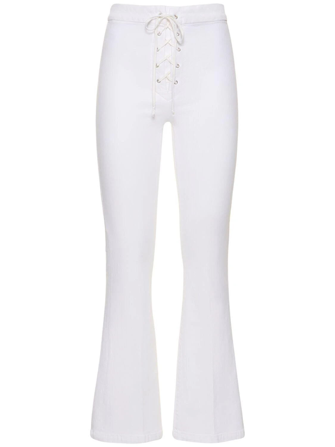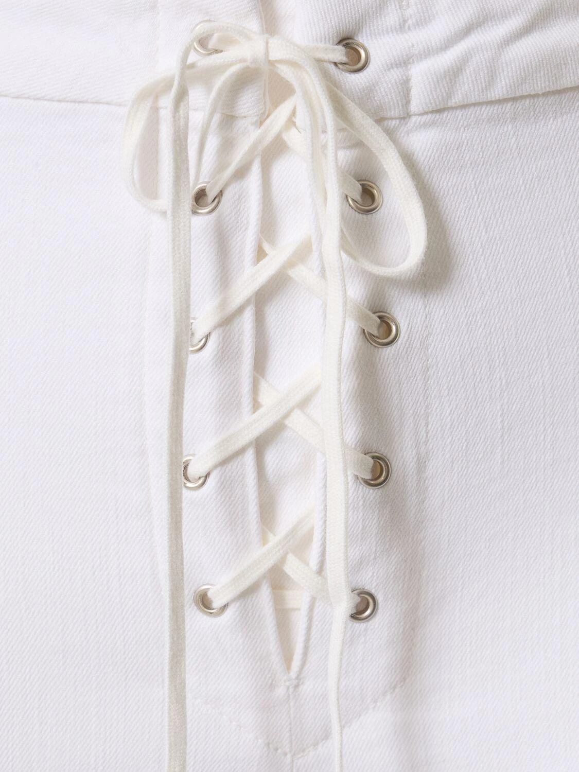 Front lace-up closure. Stonewashed coloring may vary. Five pockets. Model is wearing a size27. Colour: white