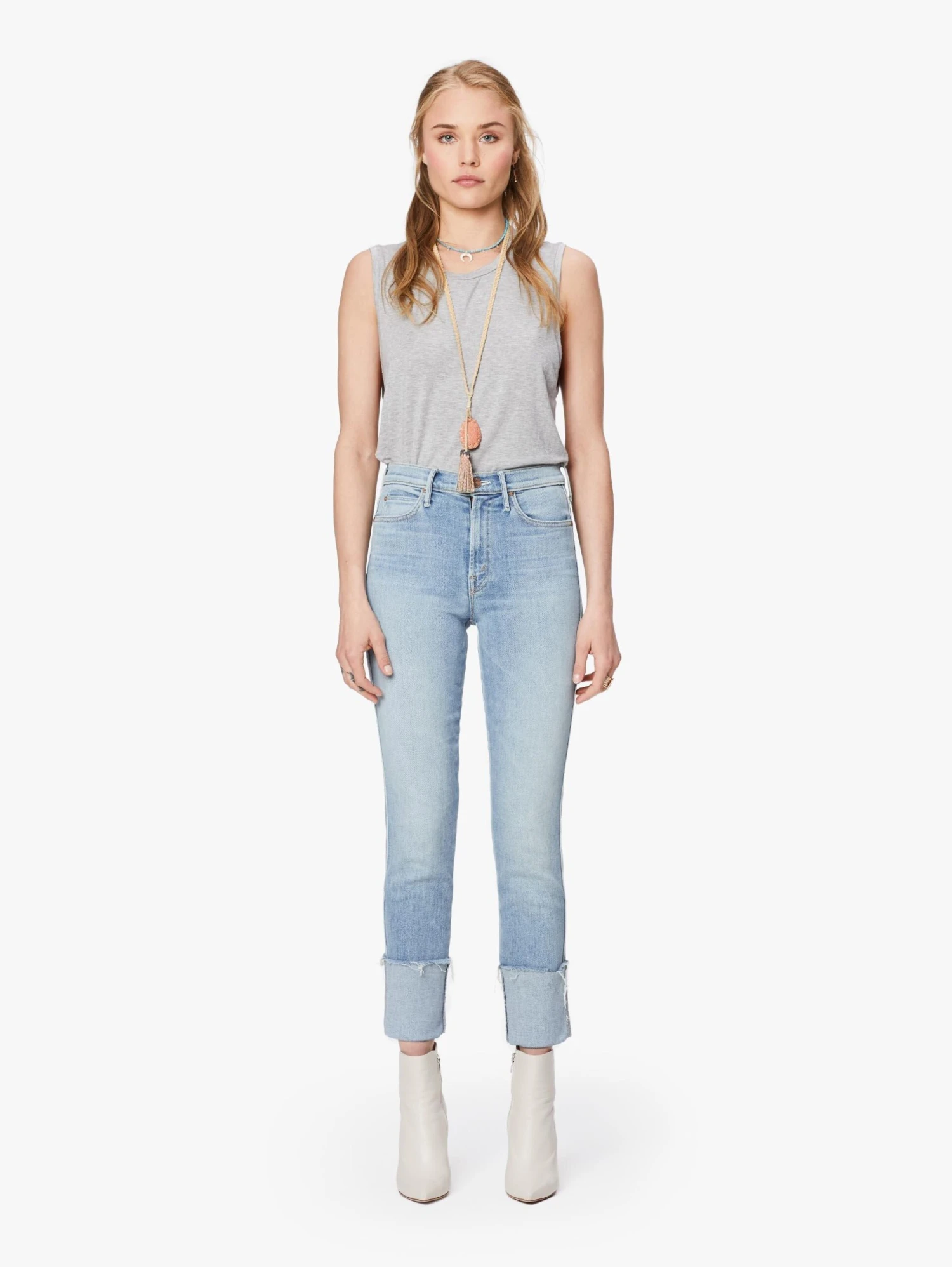 It time to cuff it up! Mothers a showstopper in her dreamy tapered light blue jeans, featuring a distressed cuffed hem. Style no. 1254-686-mio. No returns or exchanges. 81% cotton 11% lyocell 6% elastomultiester 2% elastane. 9 3/4″ rise, 27 1/2″ inseam, 11 3/4″ leg opening. Model is 5’10” wears size 26 or small bottoms and size small shirts. Size (us). Find your fit. Measurements are standard, but bodies? Not so much. Email customerservice@motherdenim. Com to get more specific. Xs. S. m. L. Chest. 31 – 33 in. 33 – 35 in. 35 – 37 in. 37 – 39 in. Waist. 24 – 26 in. 26 – 28 in. 28 – 30 in. 30 – 32 in. Hip. 331⁄2 – 351⁄2 in. 351⁄2 – 371⁄2 in. 371⁄2 – 391⁄2 in. 391⁄2 – 411⁄2 in. Pant. 0 – 2. 4 – 6. 8 – 10. 12 – 14. Colour: blue