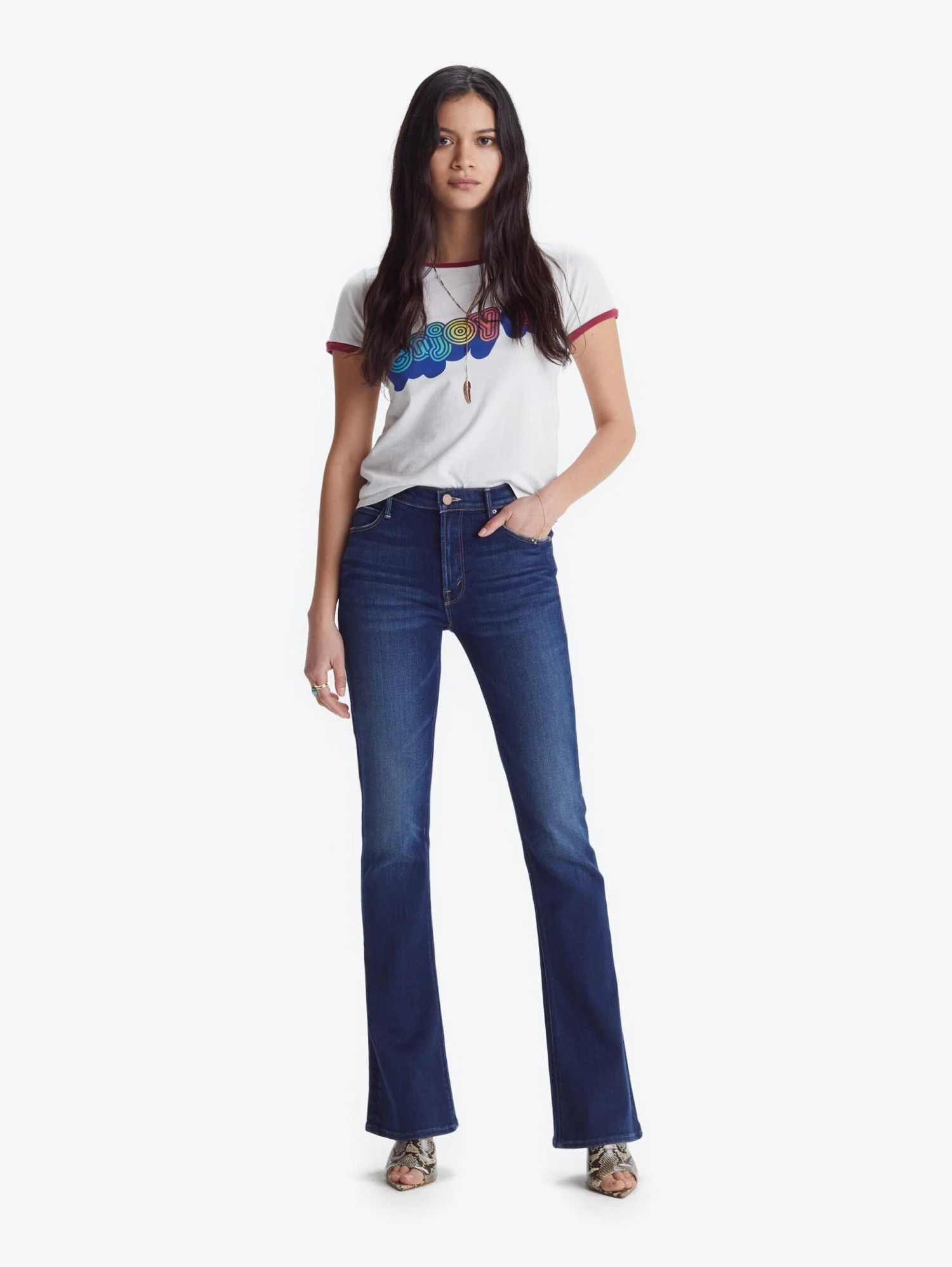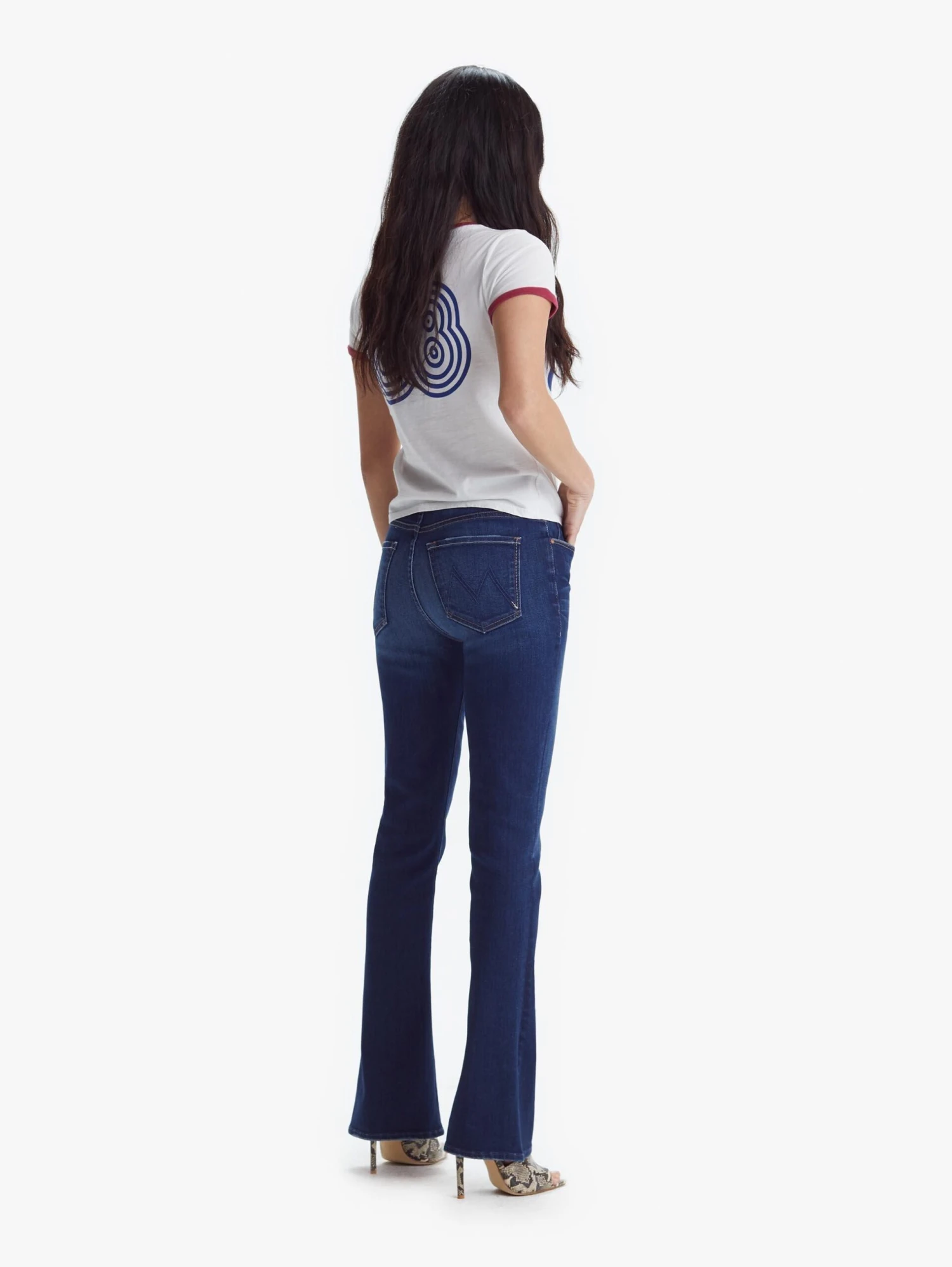 Press rewind. Mother’s tried and true mid rise flare is back in the perfect throwback dark blue wash. Made in los angeles. Style no. 1003-686-hmv. No returns or exchanges. 81% cotton 11% lyocell 6% polyester 2% elastane. Stretch. Rigid. 10″ rise, 34″ inseam, 18″ leg opening. Model is 5’10” wears size 26 or small bottoms and size small shirts. Colour: blue