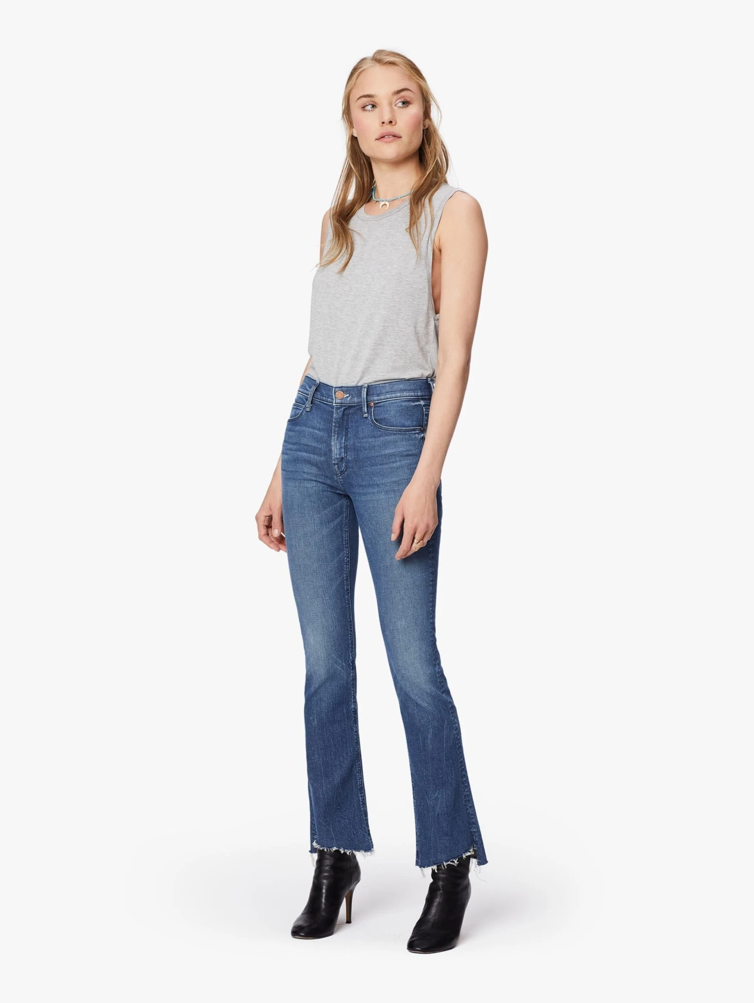 Out of control. Mother hugs the tracks in her mid-ride step frays with a muted blue wash. Style no. 1243-470-ray. No returns or exchanges. 94.5% cotton 4% polyester 1.5% elasthane. 9 1/2″ rise, 31″ inseam, 17″ leg opening. Model is 5’10” wears size 26 or small bottoms and size small shirts. Size (us). Find your fit. Measurements are standard, but bodies? Not so much. Email customerservice@motherdenim. Com to get more specific. Xs. S. m. L. Chest. 31 – 33 in. 33 – 35 in. 35 – 37 in. 37 – 39 in. Waist. 24 – 26 in. 26 – 28 in. 28 – 30 in. 30 – 32 in. Hip. 331⁄2 – 351⁄2 in. 351⁄2 – 371⁄2 in. 371⁄2 – 391⁄2 in. 391⁄2 – 411⁄2 in. Pant. 0 – 2. 4 – 6. 8 – 10. 12 – 14. Colour: blue