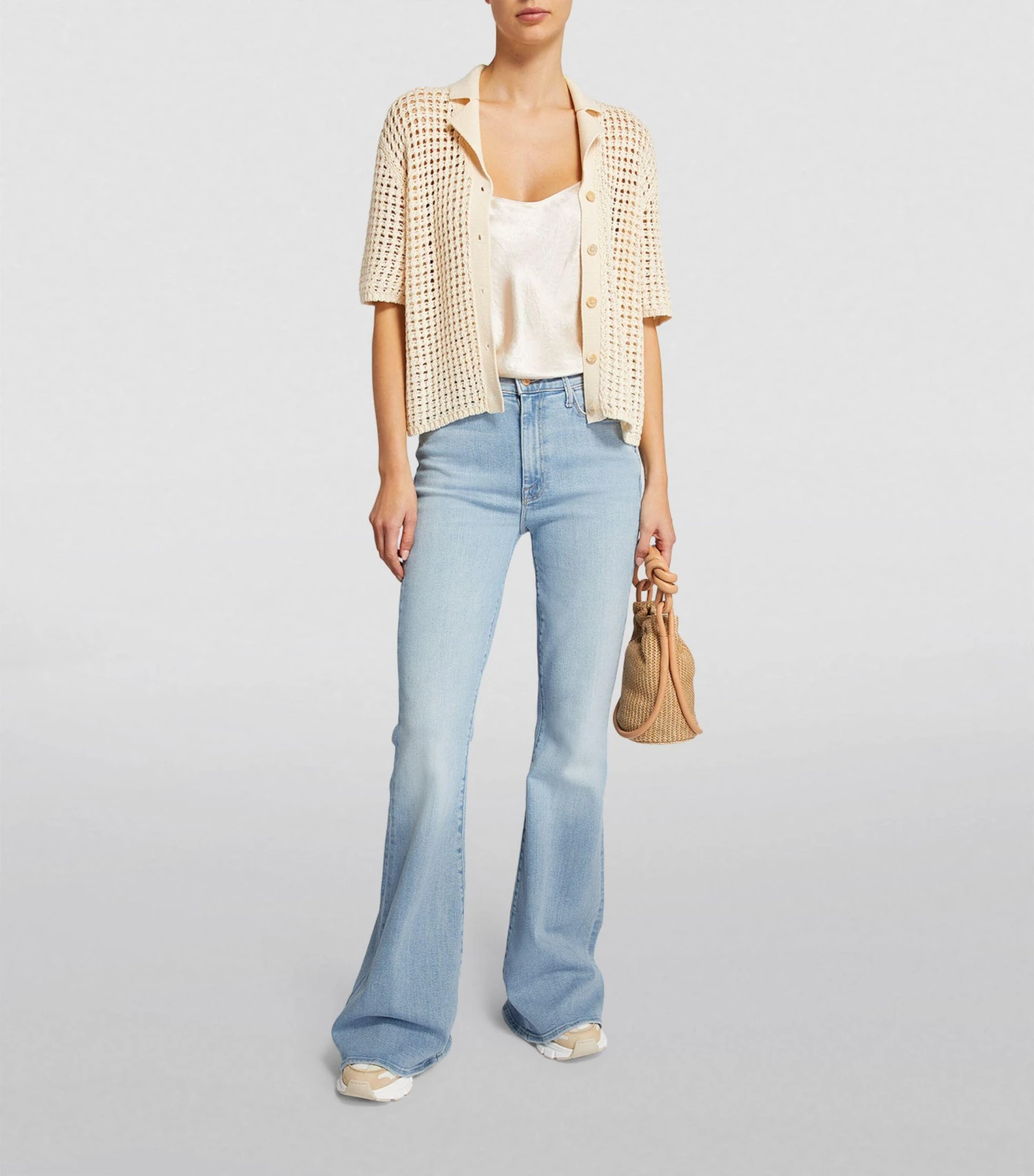 MOTHER leans into its Californian DNA with the Super Cruiser flared jeans, which boast dramatic flares that fall to the floor. The high-rise pair is imagined in a light wash, reminiscent of classic Americana, while it promises to elongate your silhouette whether styled with a tee or dressed up with heels. Cotton/Modal/Polyester/Elastane. Colour: blue