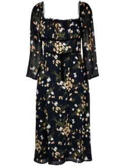 Pennie floral-print midi dress from Reformation featuring all-over floral print, square neck, long sleeves, mid-length and navy-blue/multicolour. Conscious: We’ve partnered with Good On You – an ethical agency that rates how sustainably brands perform. This item comes from a brand that performs well in relation to their impact on the planet. This item may not be on sale in France, UK, Italy, Belgium and Switzerland.