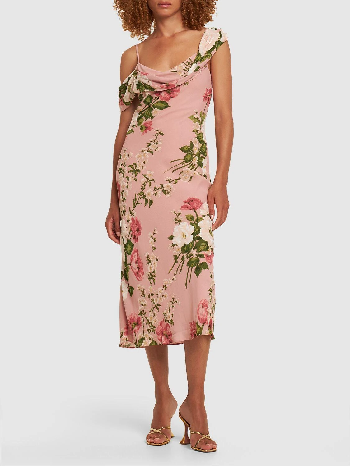 Adjustable shoulder straps. Cowl neckline. All over print placement may vary. Model is wearing a size2. Colour: pink