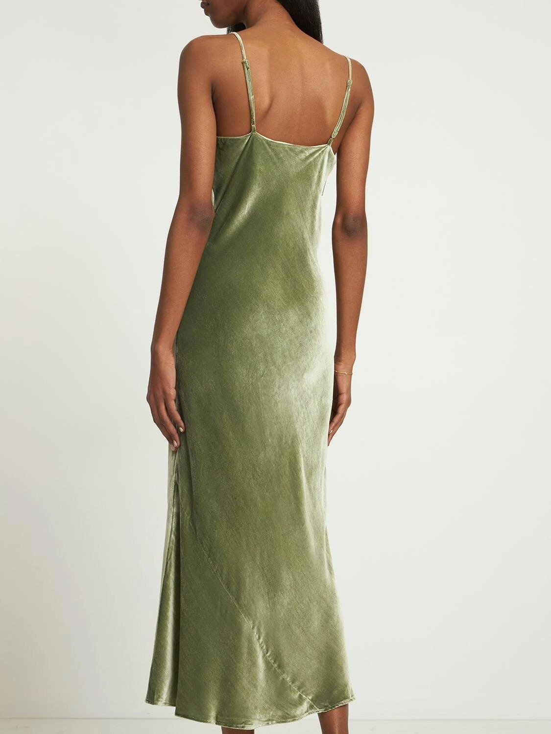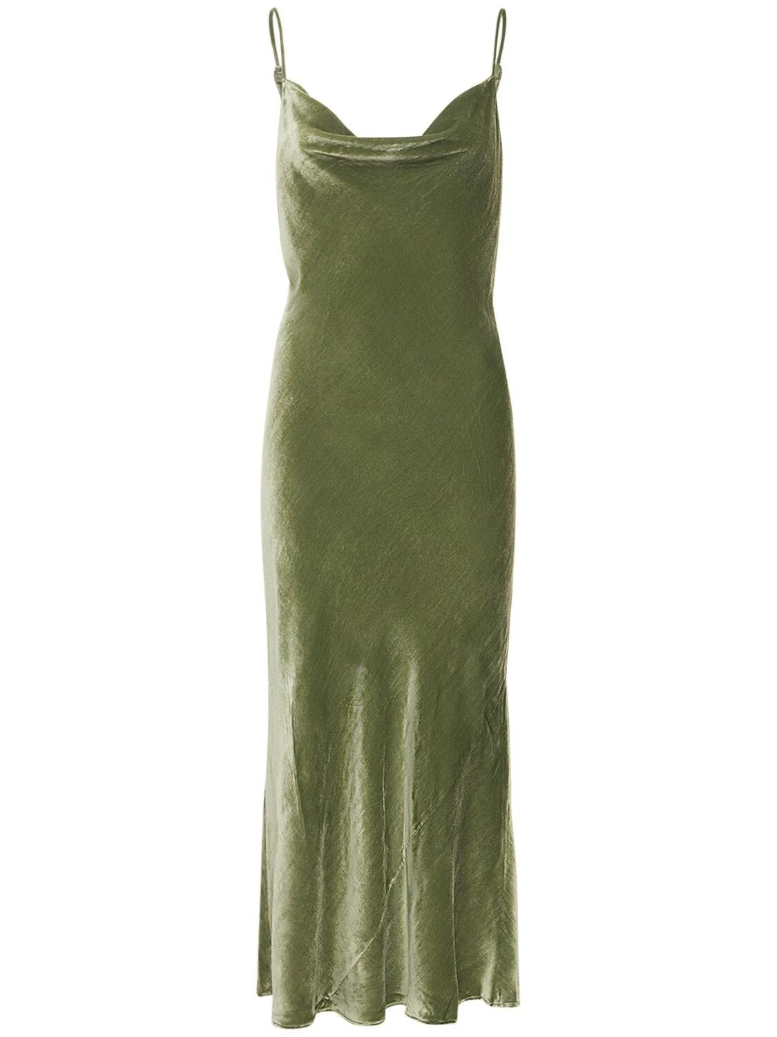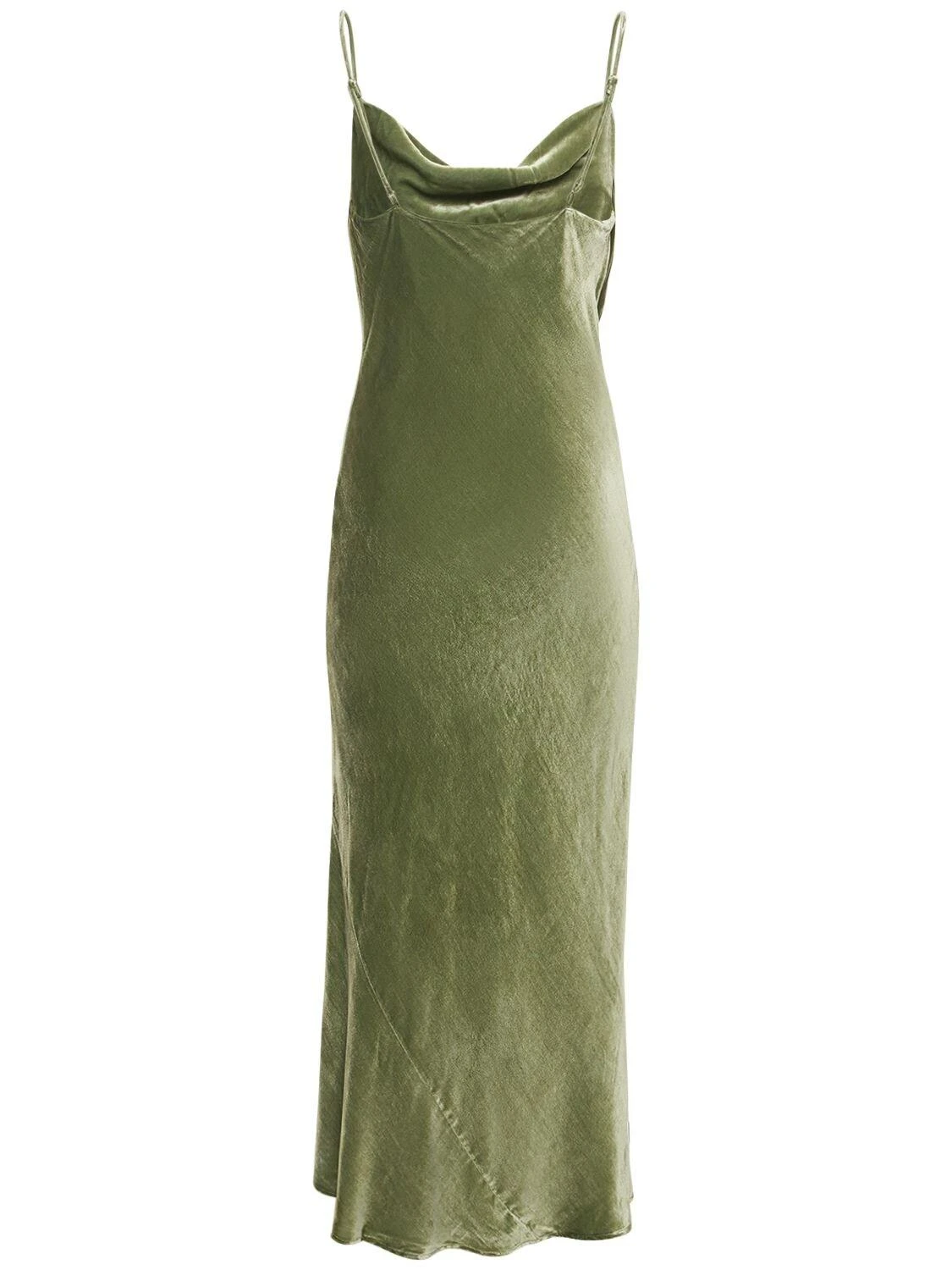 Adjustable spaghetti straps. Model is wearing a size6. Colour: green